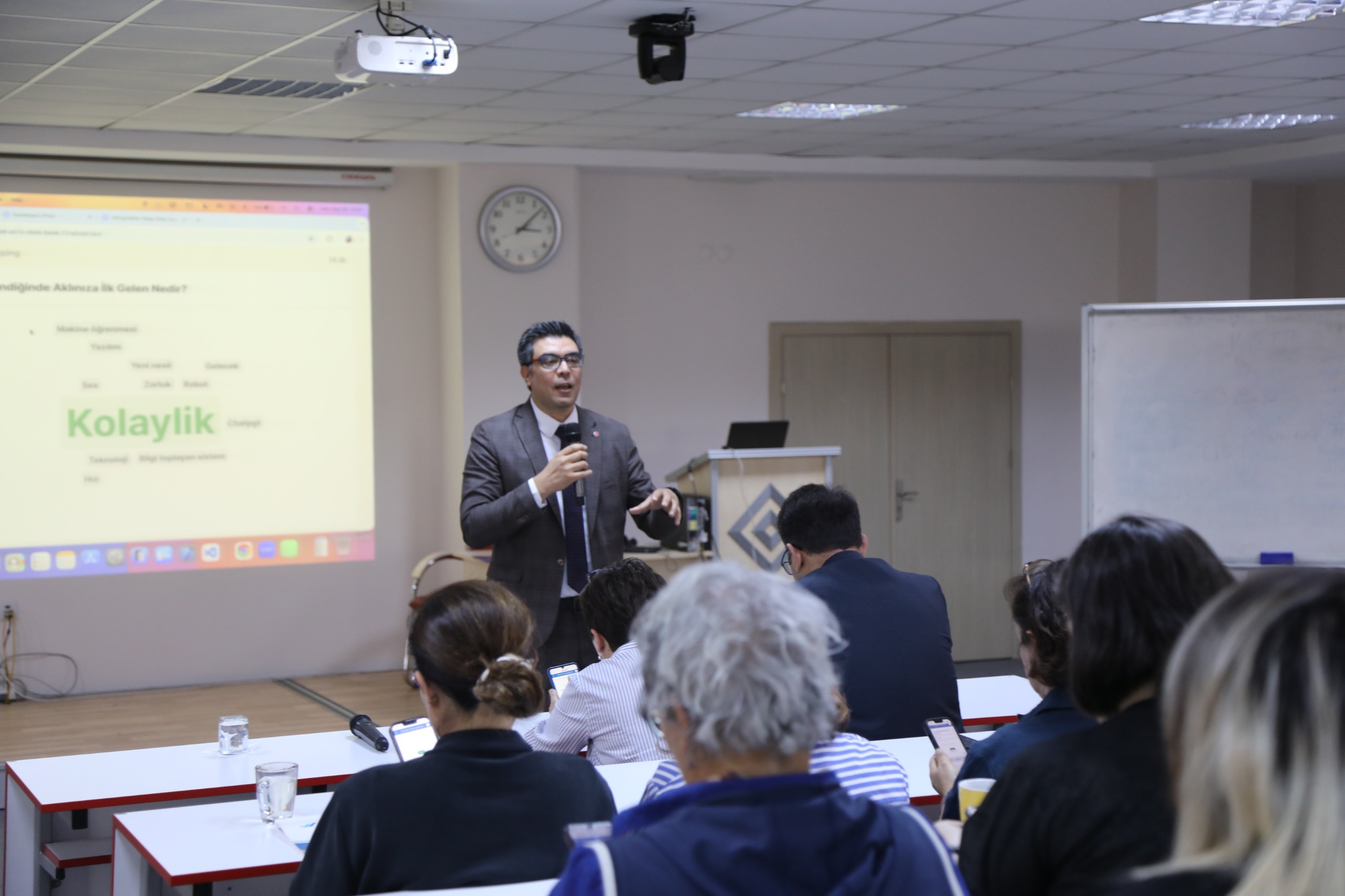 Konuşmasında yapay zekânın özellikle hemşirelik ve klinik beceri eğitimlerinde nasıl kullanılabileceği hakkında bilgi veren Prof. Dr. Altun, Geliştirdikleri yeni bir elektronik portfolyo sistemi ile öğrencilerin becerilerinin gerçek zamanlı olarak takip edilebileceğini ve bu verilerin yapay zekâ ile analiz edilerek öğrencilere öz değerlendirme imkânı sunulacağını söyledi.
