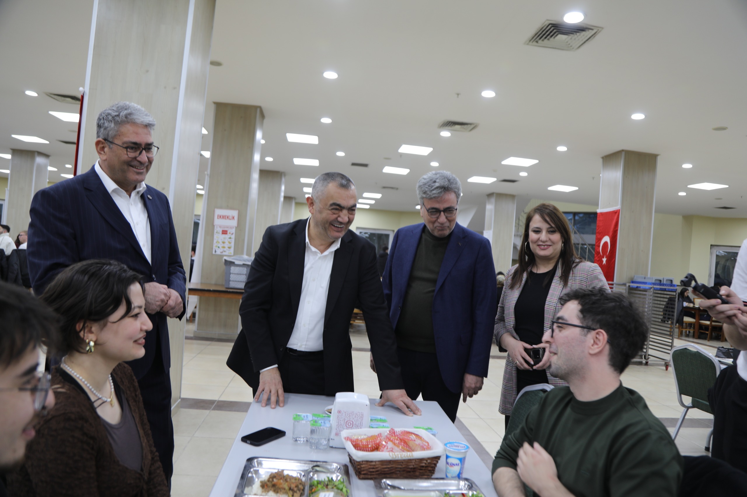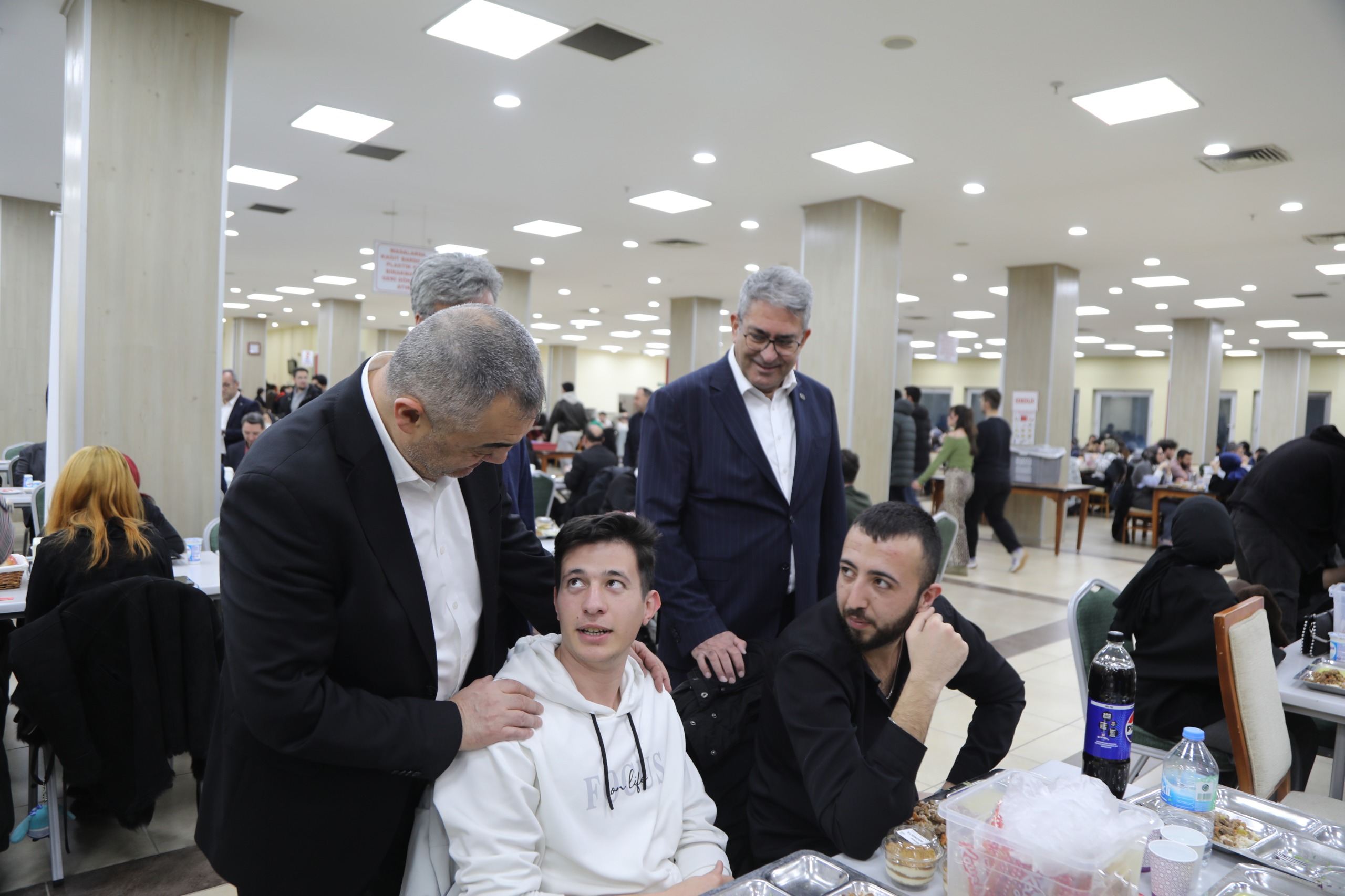 Tabldotta iftar menüsü alan Başkan Büyüksimitci ve beraberindekiler öğrenciler ile de uzun süre sohbet ettiler.