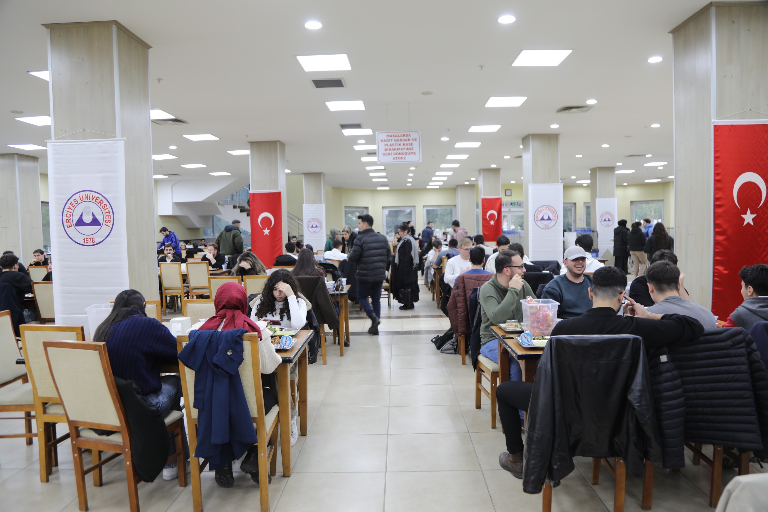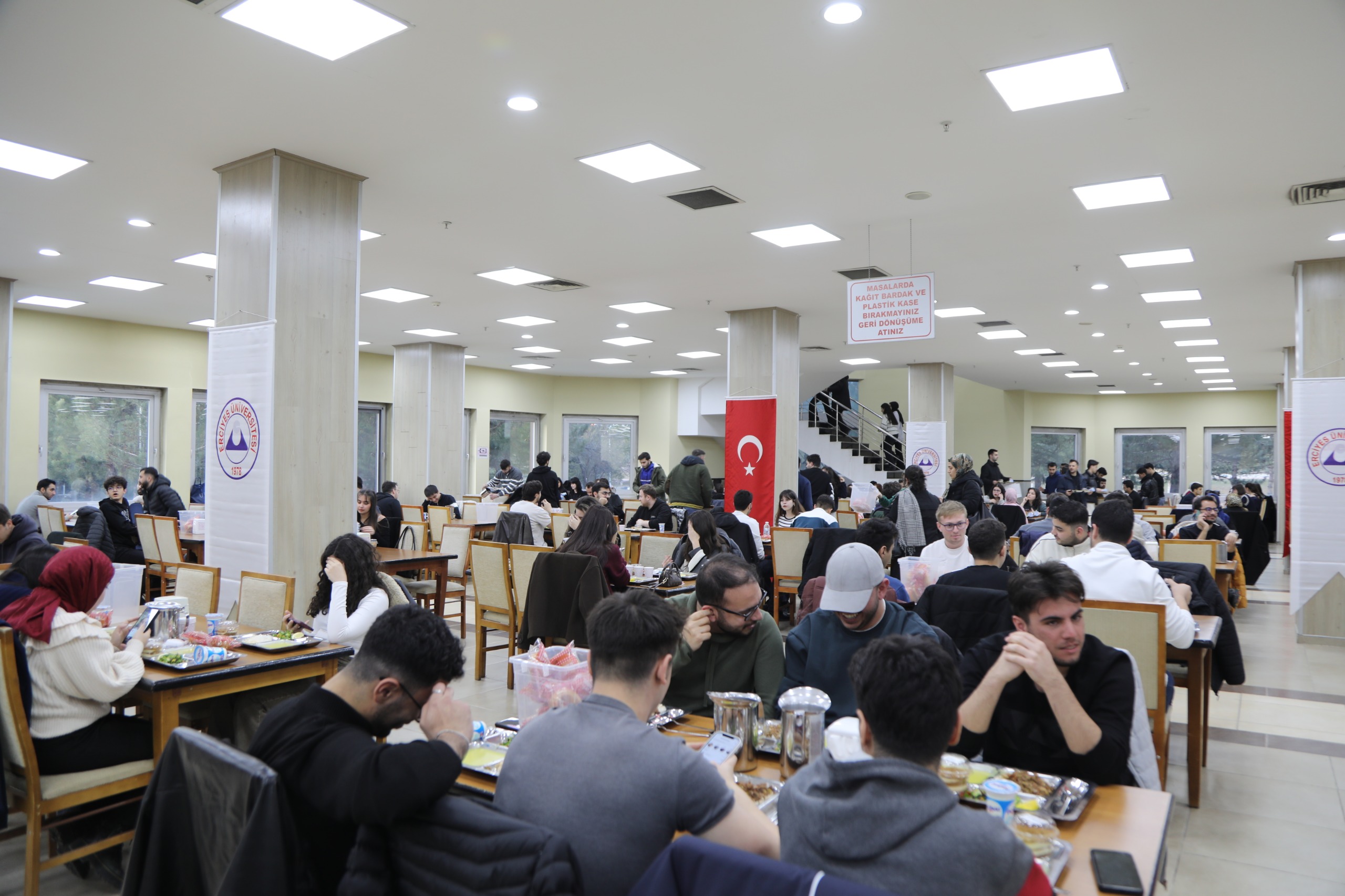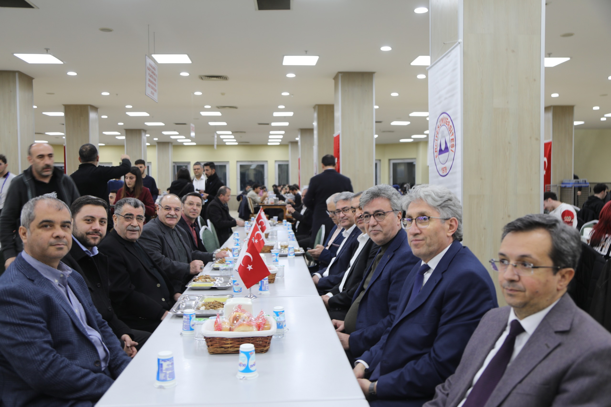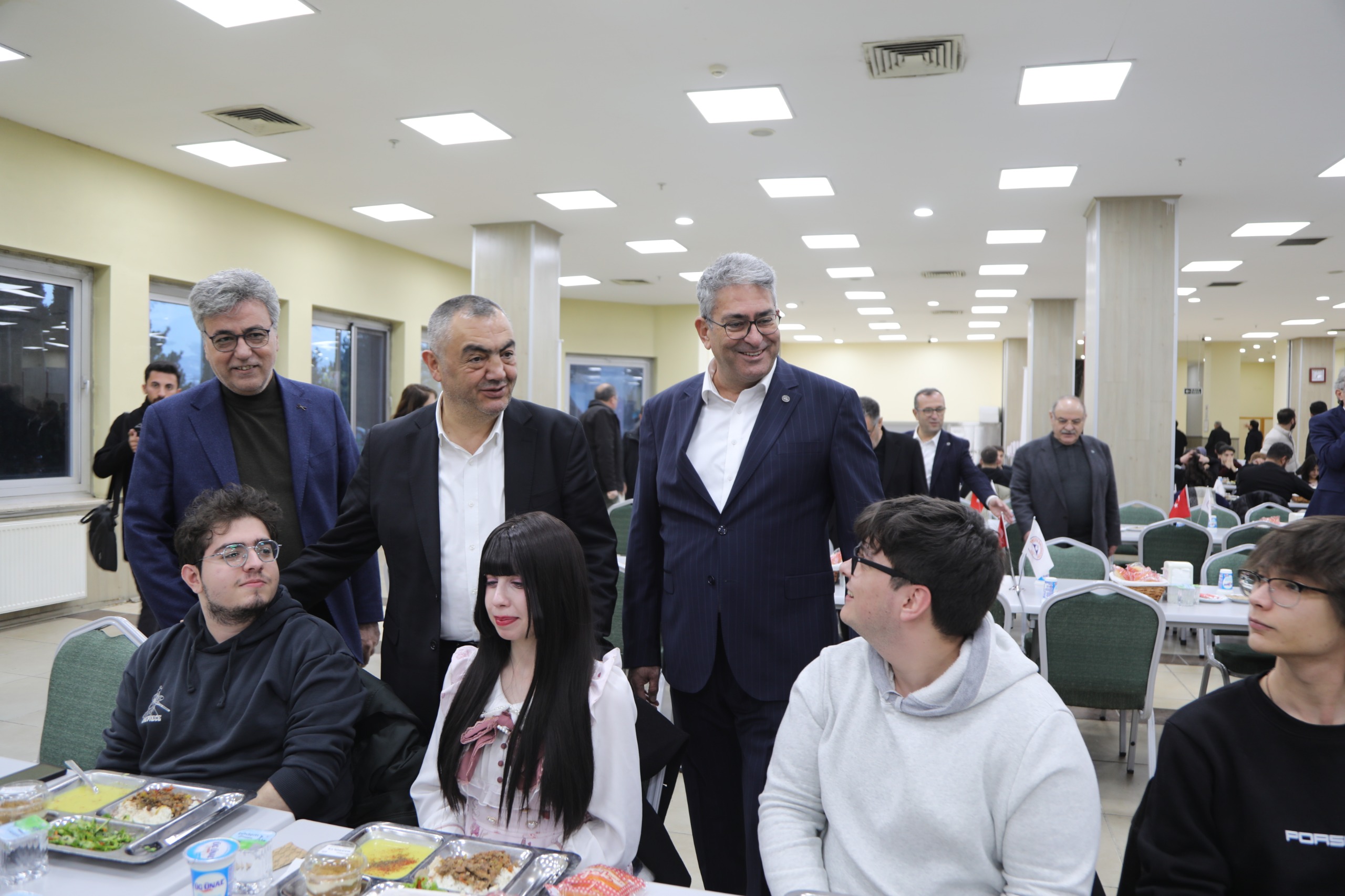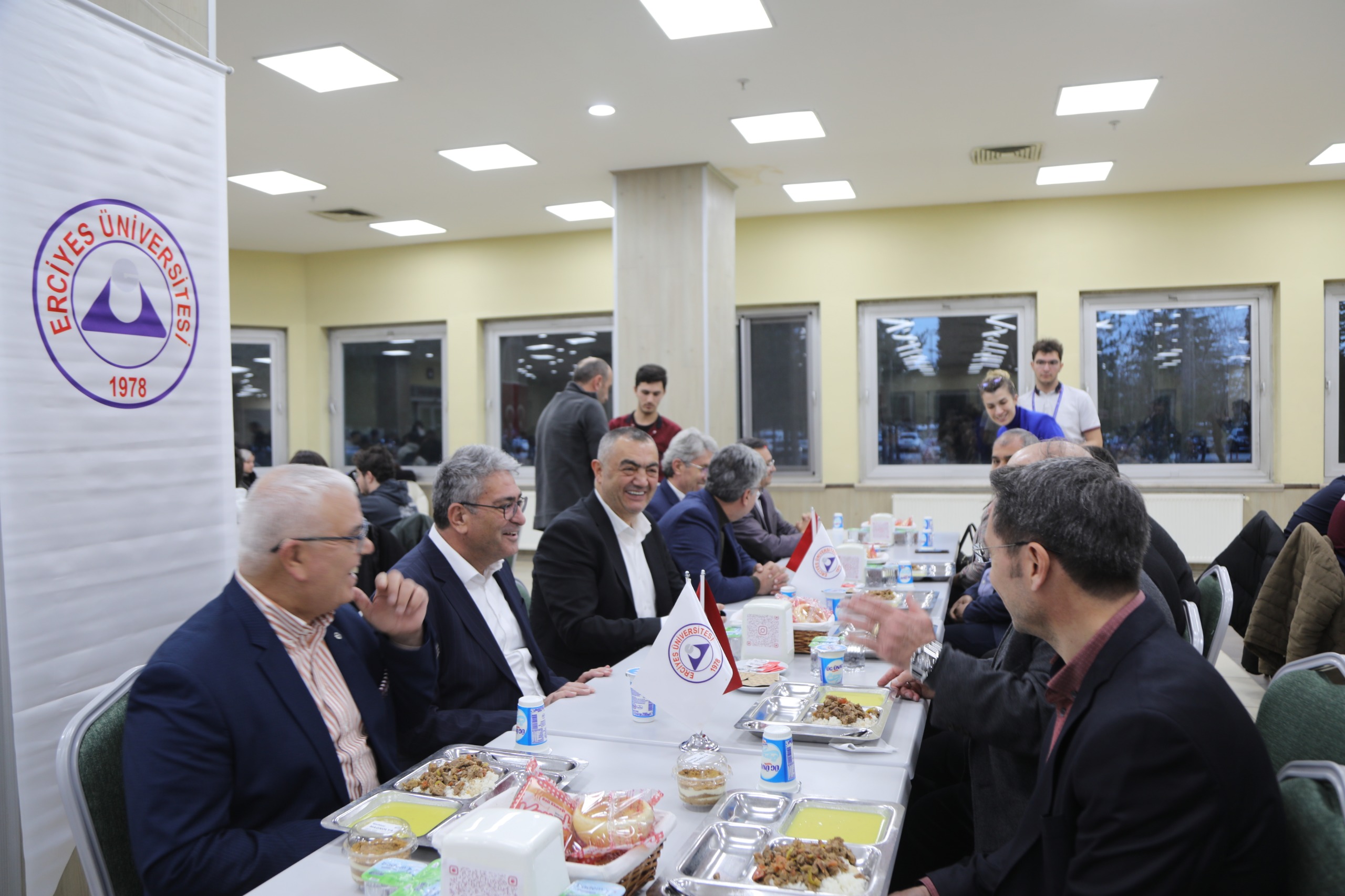 Öğrencilerimizin iftar yemeğine destek olan Kayseri Sanayi Odası (KAYSO) Yönetim Kurulu Başkanı Mehmet Büyüksimitci ve Yönetim Kurulu Üyeleri beraberinde Rektör Yardımcılarımız Oktay Özkan, Prof. Dr. M. Hakan Poyrazoğlu, Genel Sekreterimiz Prof. Dr. İbrahim Narin, Genel Sekreter Yardımcılarımı Prof. Dr. Afşın Alper Cerit ve Dr. Oktay Musa Kayırga ile birlikte öğrenci yemekhanesinde iftar yaptı.