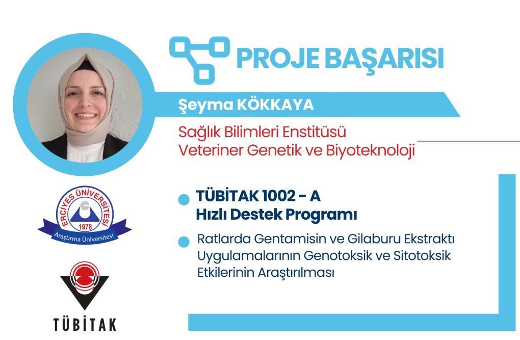 Üniversitemiz Sağlık Bilimleri Enstitüsü Veteriner Genetik ve Biyoteknoloji Anabilim Dalı doktora öğrencisi Şeyma KÖKKAYA'nın yürütücü; Veteriner Fakültesi Zootekni ve Hayvan Besleme Bölümü öğretim üyelerinden Prof. Dr. Korhan ARSLAN, Prof Dr. Bilal AKYÜZ, Doç. Dr. Fadime DALDABAN, Veteriner Fakültesi Klinik Bilimler Bölümü öğretim üyelerinden Prof. Dr. Öznur ARSLAN, Dr. Öğr. Üyesi İlknur KARACA BEKDİK, Tıp Fakültesi Temel Tıp Bilimleri Bölümü öğretim üyesi Doç. Dr. Esra BALCIOĞLU araştırmacı olduğu "Ratlarda Gentamisin ve Gilaburu Ekstraktı Uygulamalarının Genotoksik ve Sitotoksik Etkilerinin Araştırılması” başlıklı proje TÜBİTAK 1002-A Hızlı Destek Modülü kapsamında desteklenmeye hak kazanmıştır.