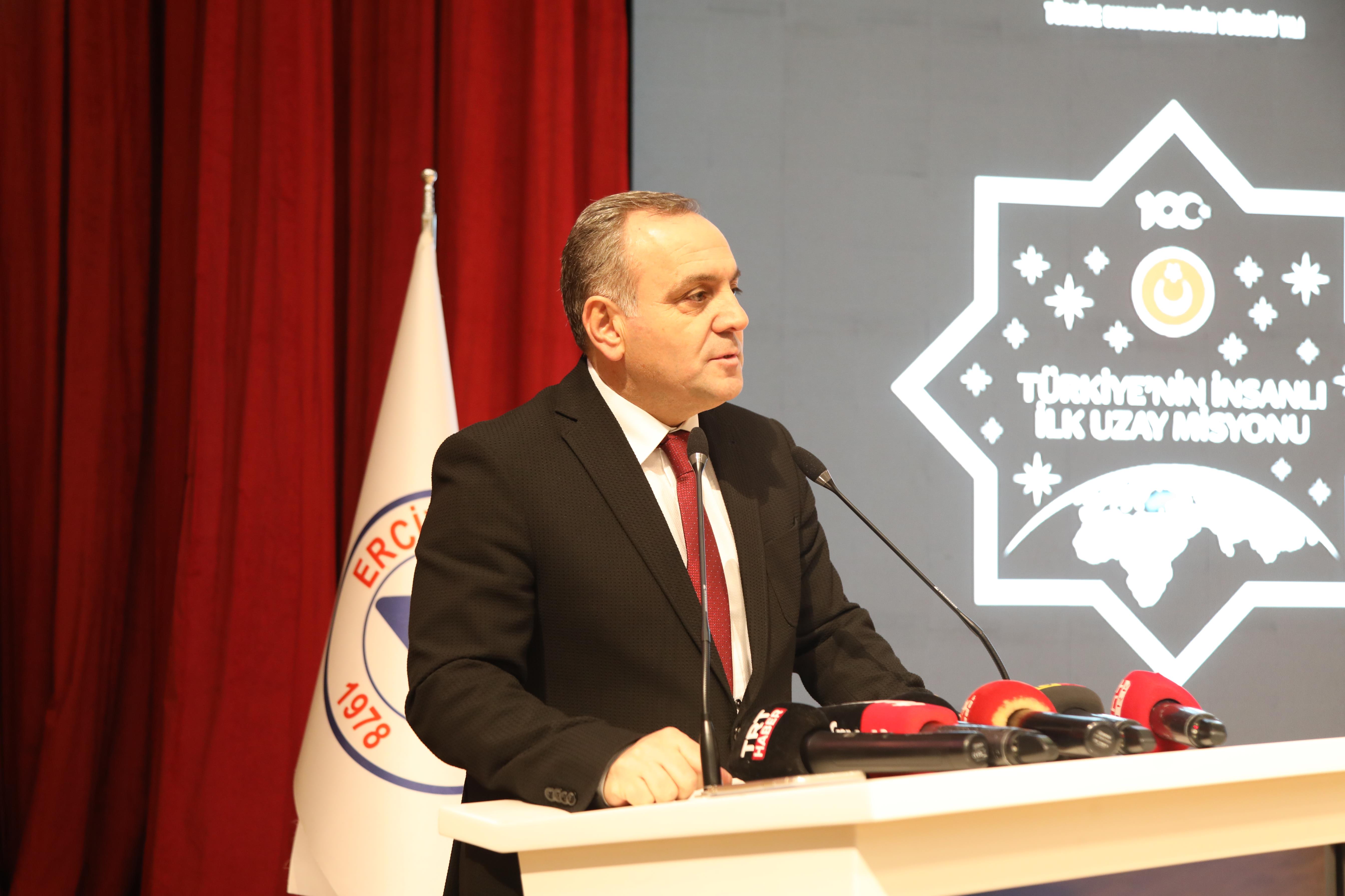 Rektörümüz Prof. Dr. Fatih Altun ise Türkiye'nin ilk astronotu Alper Gezeravcı’yı Üniversitemizde ağırlamaktan duyduğu memnuniyeti dile getirerek, “Erciyes Üniversitesi olarak biz her zaman Ülkemizin gelişimine katkıda bulunmak için faaliyet gösteren ve saygın üniversiteler arasında yer almayı hedef edinmiş bir üniversiteyiz. Sayın Bakanımızın desteğiyle Erciyes Üniversitesi Teknopark olarak son derece etkin araştırmalar yapmaktayız. Tekno Geliştirme Bölgesi 1 olarak biz 300’e yakın firmayla gelişimini tamamlamış olup, Tekno Geliştirme Bölgesi 2’de de faaliyetlerimizi devam ettirmekteyiz. Özellikle inşaat faaliyetlerinde ciddi bir mesafe almış durumdayız. Ben desteklerinden dolayı Sanayi ve Teknoloji Bakanı Mehmet Fatih Kacır’a teşekkür etmek istiyorum” dedi.