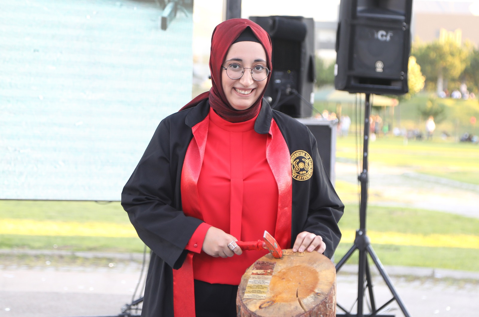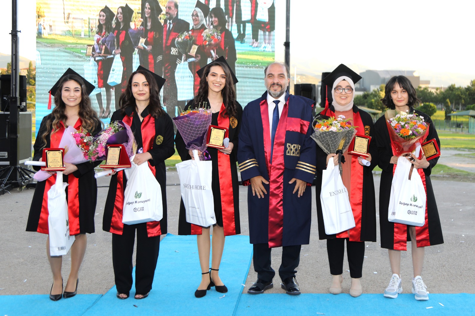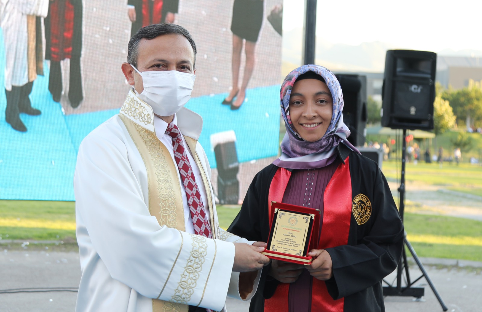 Dönem birincisi Nadide Yıldız’ın mezuniyet kütüğüne plaket çaktığı tören, öğrencilere diplomalarının verilmesinin ardından sona erdi.