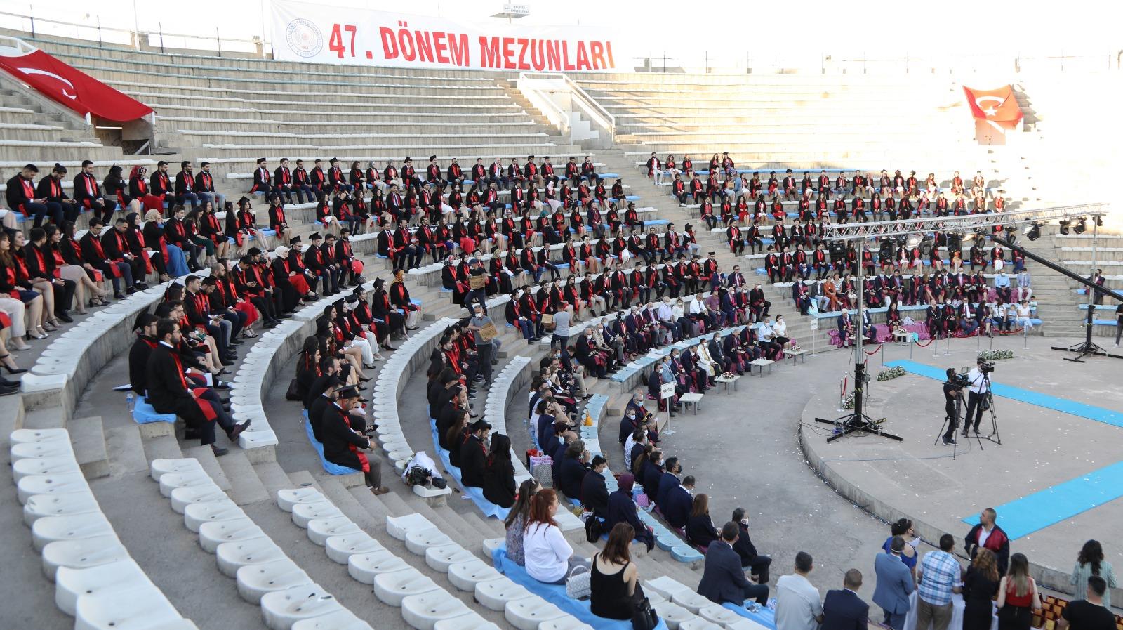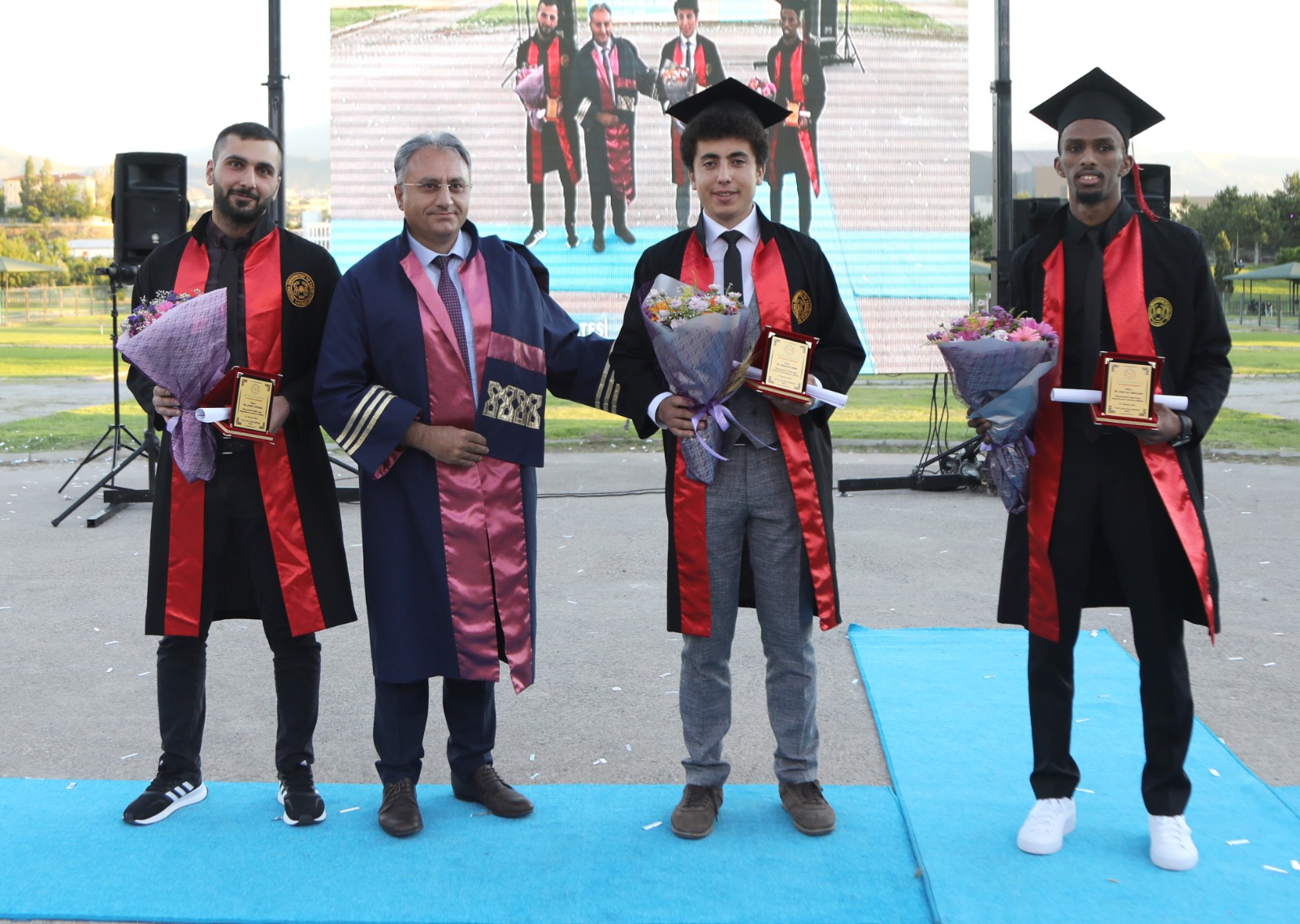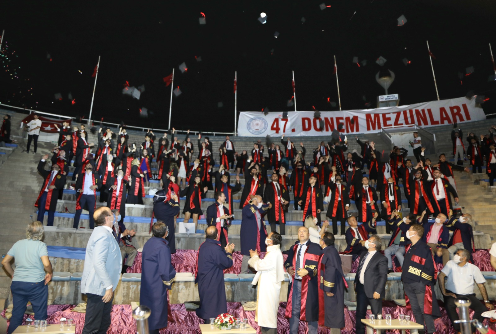Dönem birincisi Nadide Yıldız’ın mezuniyet kütüğüne plaket çaktığı tören, öğrencilere diplomalarının verilmesinin ardından sona erdi.