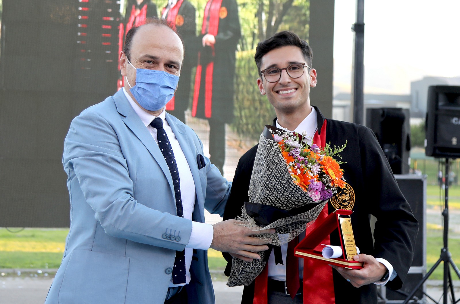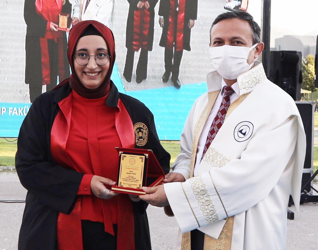 Konuşmasında öğrencilere de seslenen Rektörümüz, sözlerini şöyle sürdürdü: “Türkiye’nin en saygın üniversitelerinden birinden, en saygın mesleğin mensupları olarak mezun oluyorsunuz. Üniversite yönetimi olarak, eğitim ve araştırma olanaklarınızı en üst düzeye çıkarmak, her türlü sosyal, kültürel ve bilimsel faaliyetlerinizde yanınızda olmak için eğitim süreniz boyunca gayret ettik. Sizleri, yenilikçi, milli ve ahlaki değerleri ön planda tutan, insanlığın temel değerlerine duyarlı, mesleki sorumluluklarını başarıyla yerine getirebilen, ulusal ve uluslararası düzeyde istihdam edilebilir yüksek nitelikli bireyler olarak yetiştirmek için gayret gösterdik. Artık eğitimlerinizi tamamlayarak birer hekim olarak buradan mezun oluyorsunuz. Öncelikle ailenizin ve hocalarınızın sizlere verdiği emeği, gayreti boşa çıkarmayın. Çok çalışın, gayret edin, zorluklar karşısında yılmayın ve hiçbir ayrımda bulunmadan insanlara en iyi şekilde sağlık hizmeti verin.