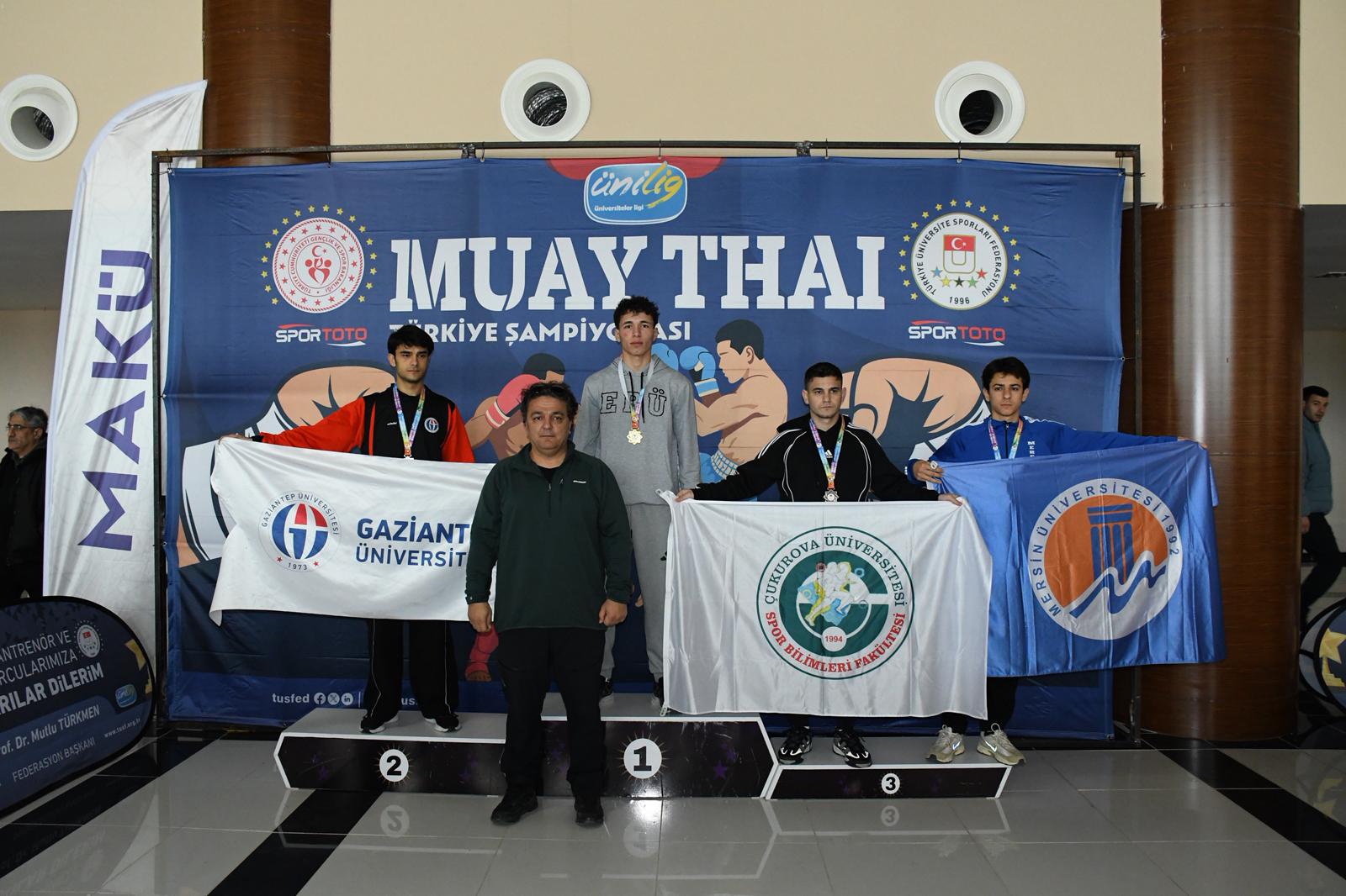 Türkiye Üniversite Sporları Federasyonu tarafından 13 – 16 Şubat 2026 tarihleri arasında Burdur Mehmet Akif Ersoy Üniversitesinde yapılan, ÜNİLİG Muay Thai Türkiye Şampiyonasında, katılan 108 üniversite 288 sporcunun arasından Üniversitemiz 15 sporcu ile katılmış olup 14 sporcu dereceye girerek, Üniversitemiz Erkekler A ve B Division kategorisinde Türkiye Şampiyonu, Kadınlarda ise Türkiye üçüncüsü olarak büyük başarı elde etmişlerdir.