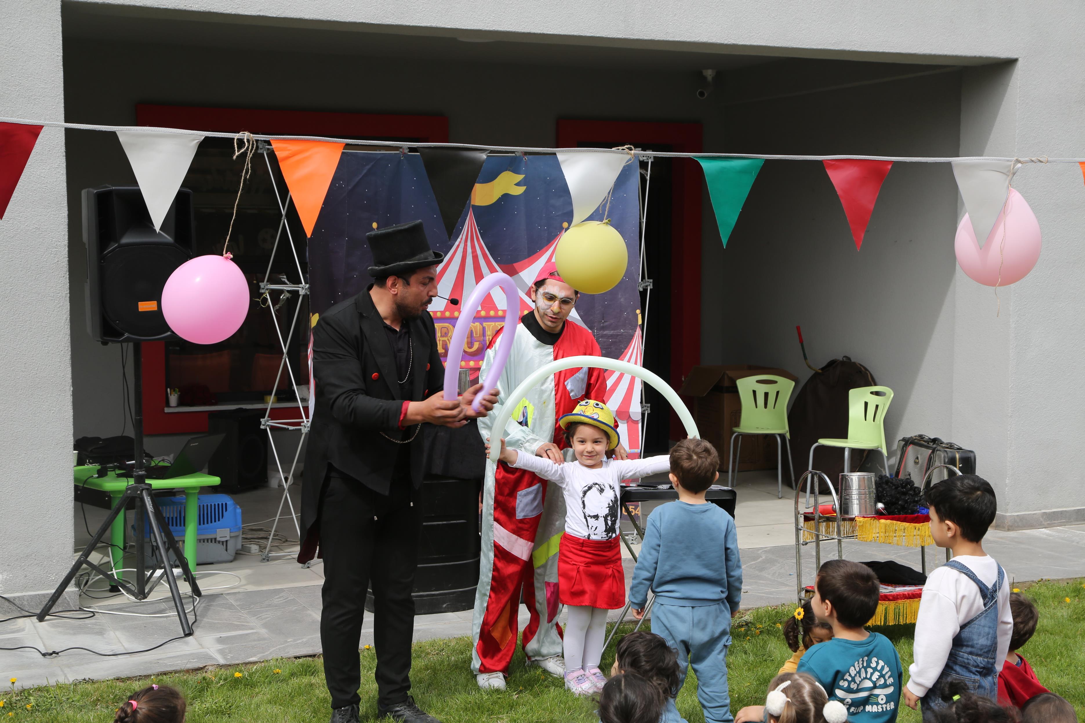 Şenlikte; sihirbaz gösterisi ve oyun alanlarında minik öğrenciler gün boyunca eğlendiler.