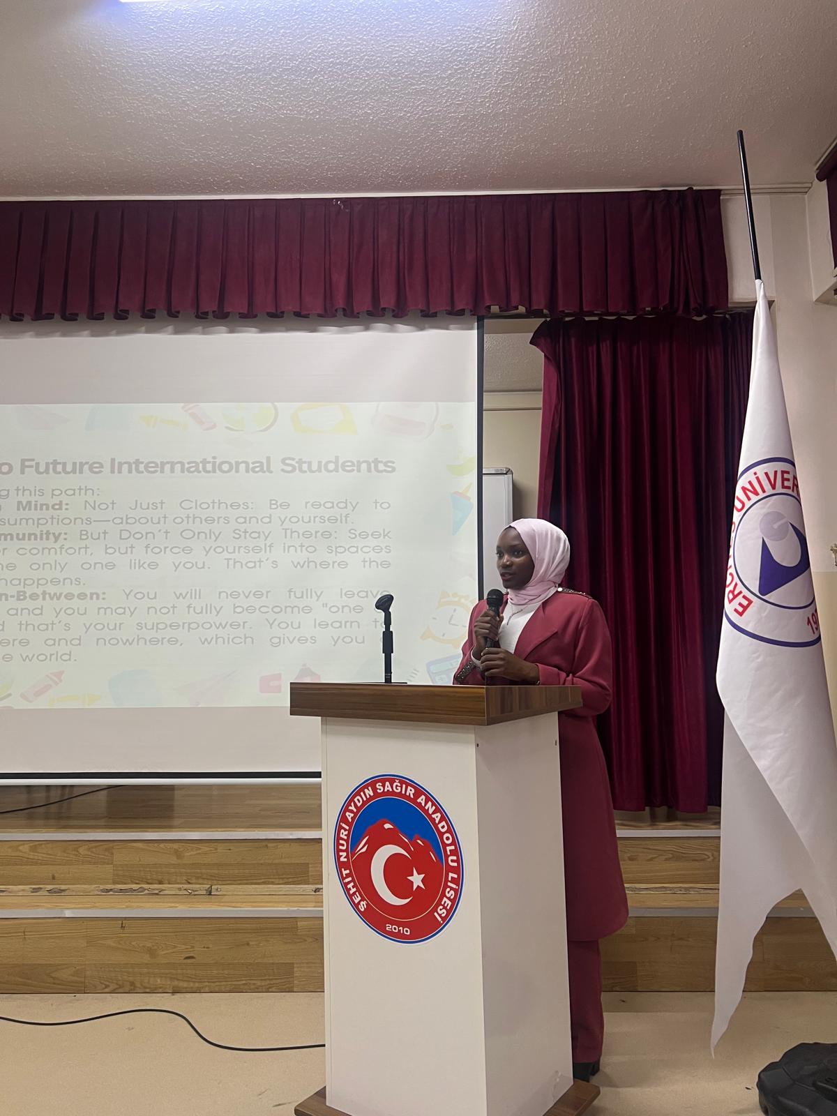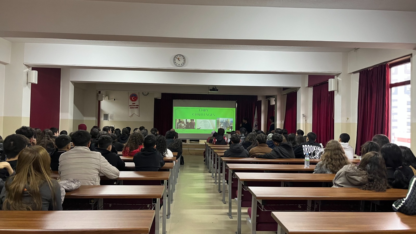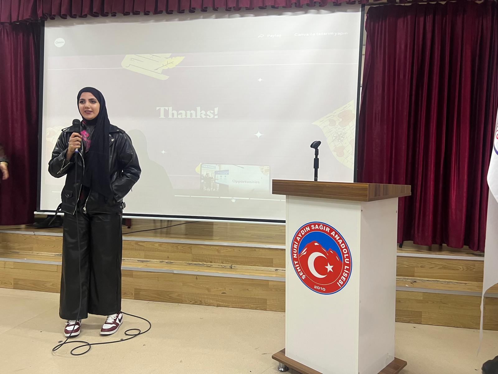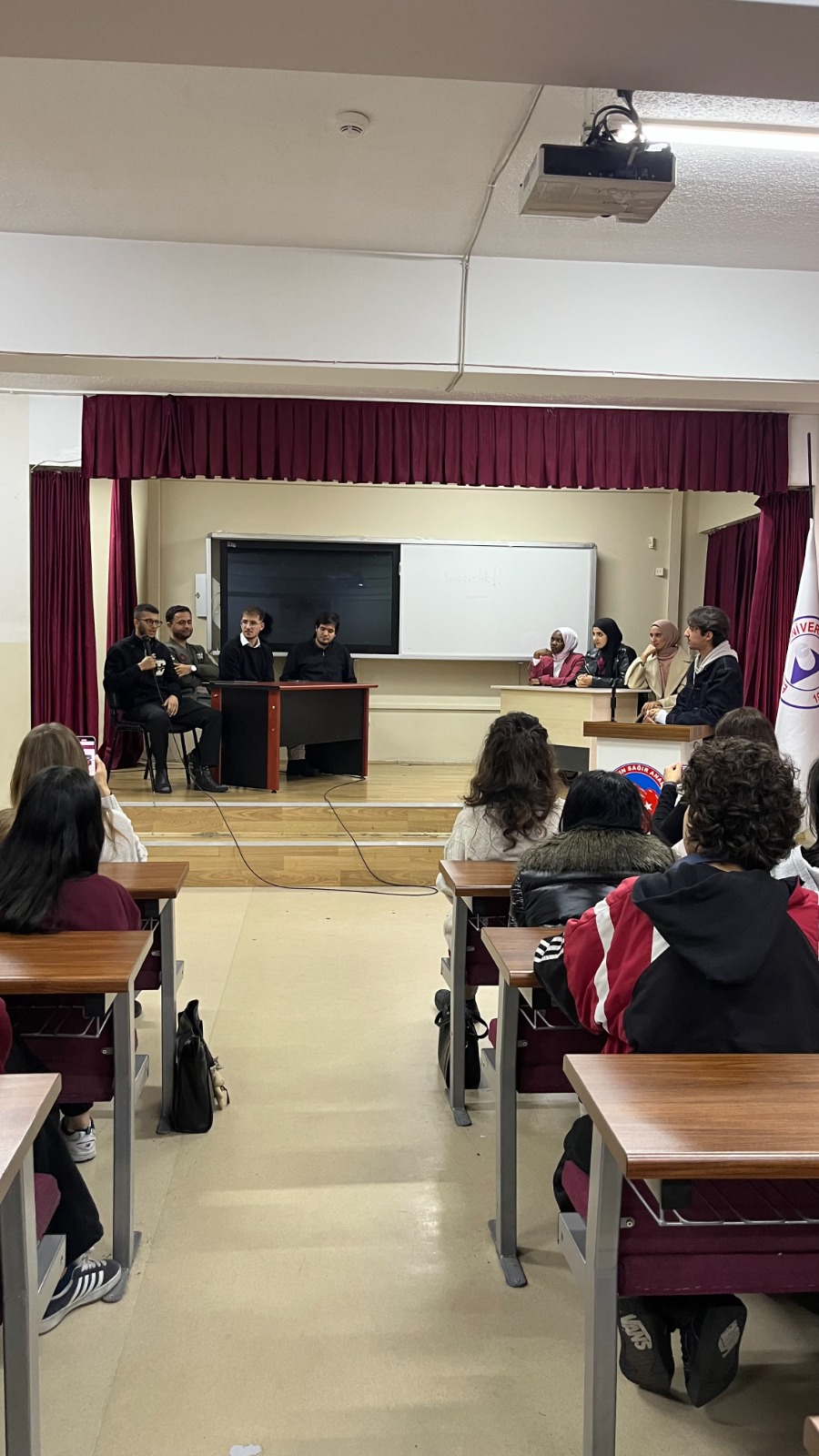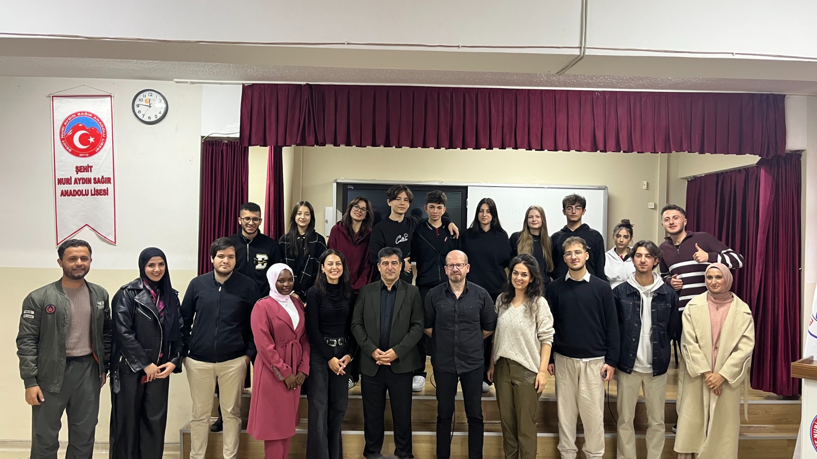 Dış İlişkiler Ofisi, uluslararası öğrencileriyle birlikte Şehit Nuri Aydın Sağır Anadolu Lisesi İngilizce dil sınıfı öğrencileriyle bir söyleşi programı gerçekleştirdi. Etkinlik kapsamında uluslararası öğrenciler, “Yurtdışında Eğitim Deneyimi” teması altında kendi akademik yolculuklarını, karşılaştıkları fırsatları ve kültürel uyum süreçlerini lise öğrencileriyle paylaştı.