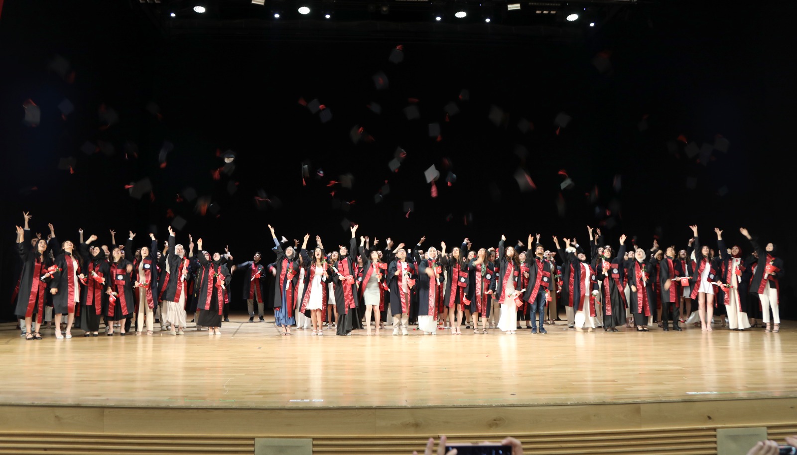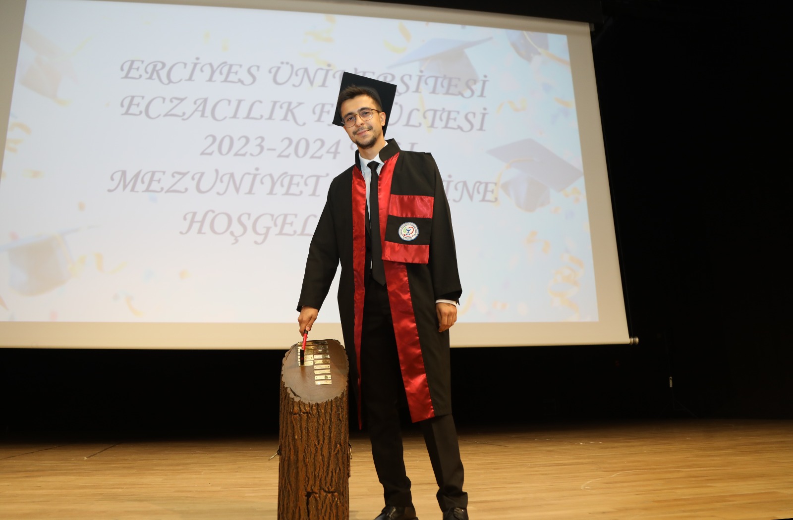 Mezuniyet töreni dönem birincisi Mustafa Mert Erciyas’ın mezuniyet kütüğüne plaket çakması, mezun öğrenciler tarafından eczacı yemini edilmesi ve hep birlikte keplerin havaya fırlatmasıyla son buldu.
