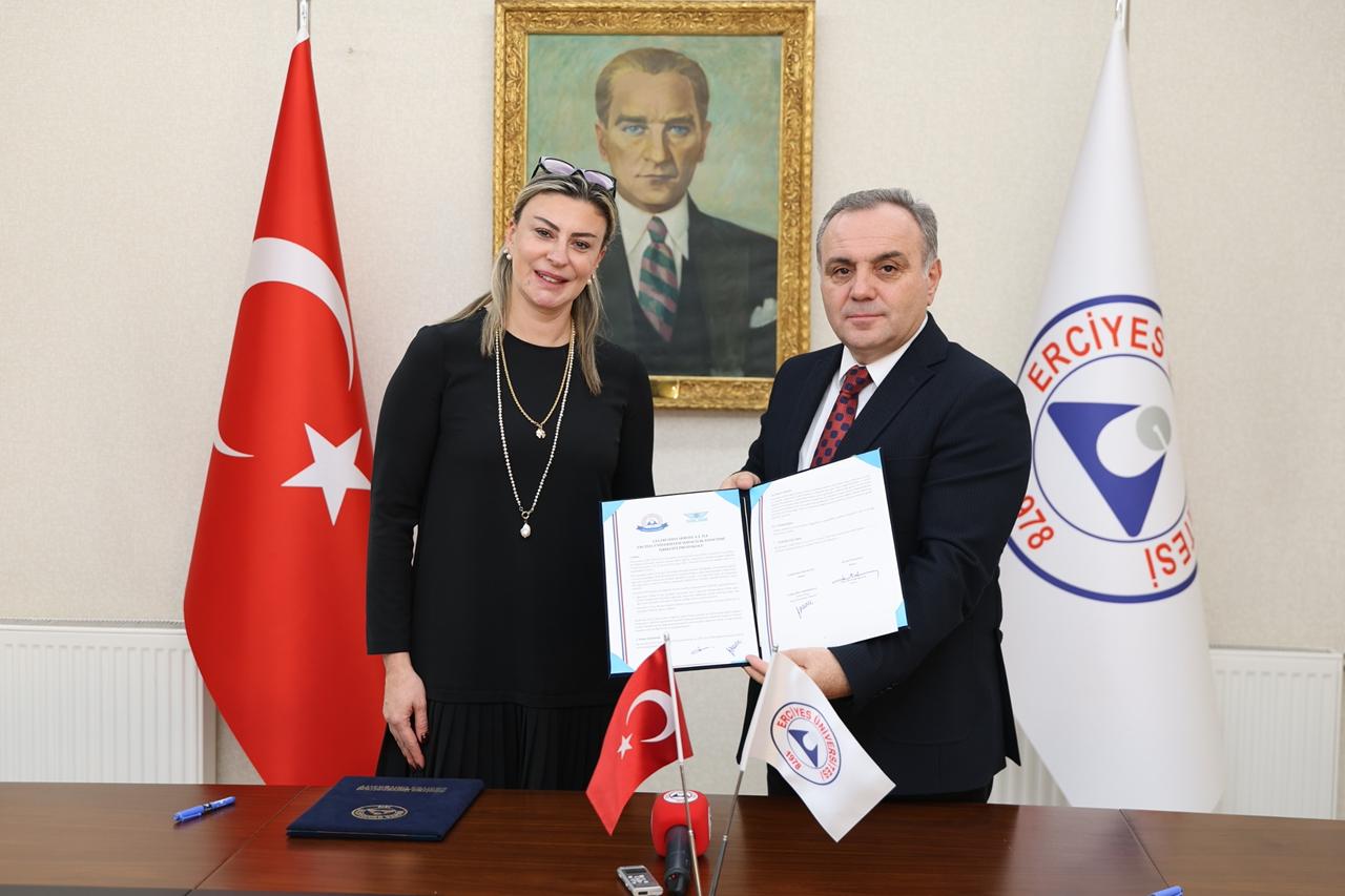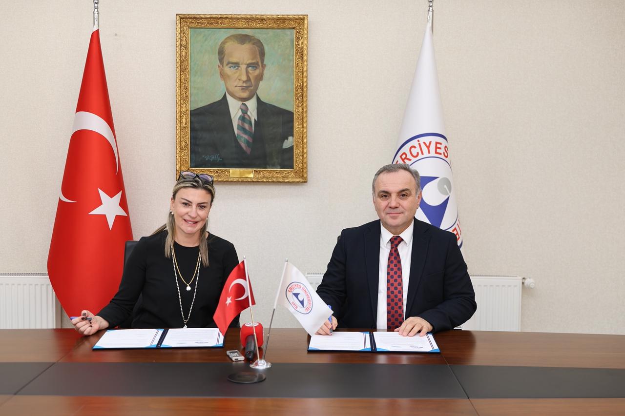 Konuşmaların ardından Rektörümüz Prof. Dr. Fatih Altun ve Çelebi Hava Servisi İnsan Kaynakları Müdürü Gökçe Kulaksızoğlu iş birliği protokolüne imza attı.