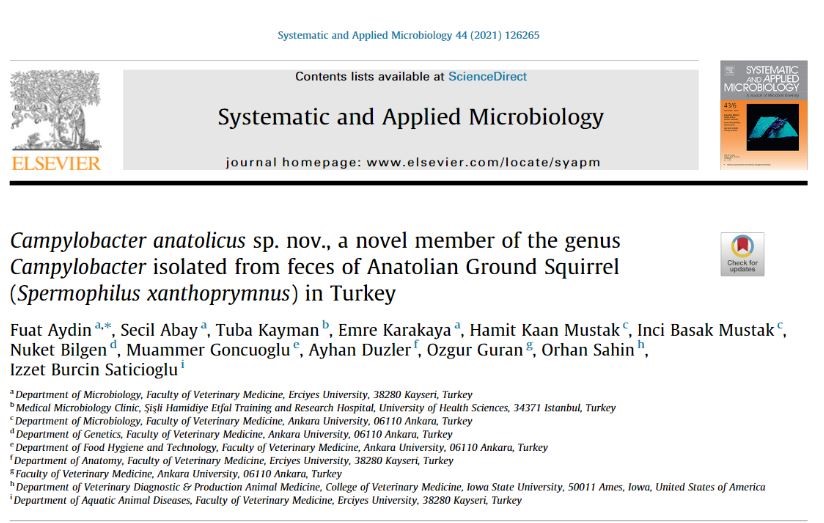 Proje ekibince isimlendirilmesi yapılan Campylobacter anatolicus’a ilişkin makale bakteriyel taksonomi alanındaki en üst düzey dergi olan “Systematic and Applied Microbiology” dergisinde yayınlandı.