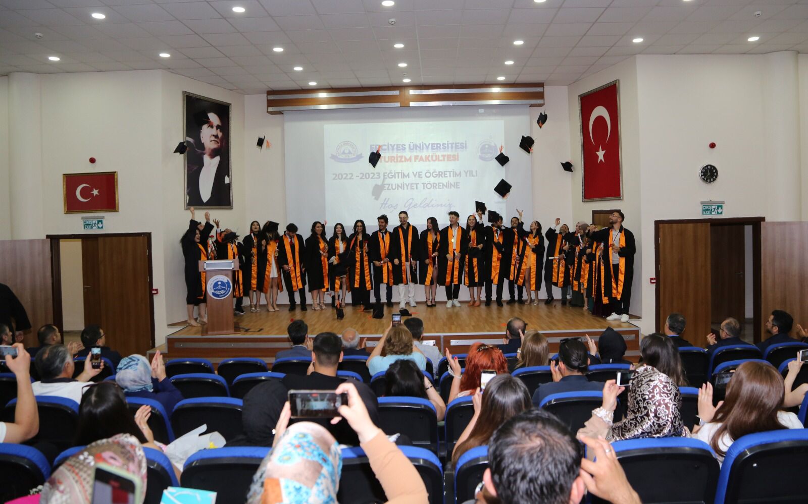 Turizm Fakültesi Konferans Salonunda gerçekleştirilen mezuniyet törenine; Kayseri Büyükşehir Belediye Başkanı Dr. Memduh Büyükkılıç Rektör Vekilimiz Prof. Dr. Hakan Aydın, Turizm Fakültesi Dekanı Prof. Dr. Kenan Güllü ile akademisyenler, öğrenciler ve aileler katıldı.