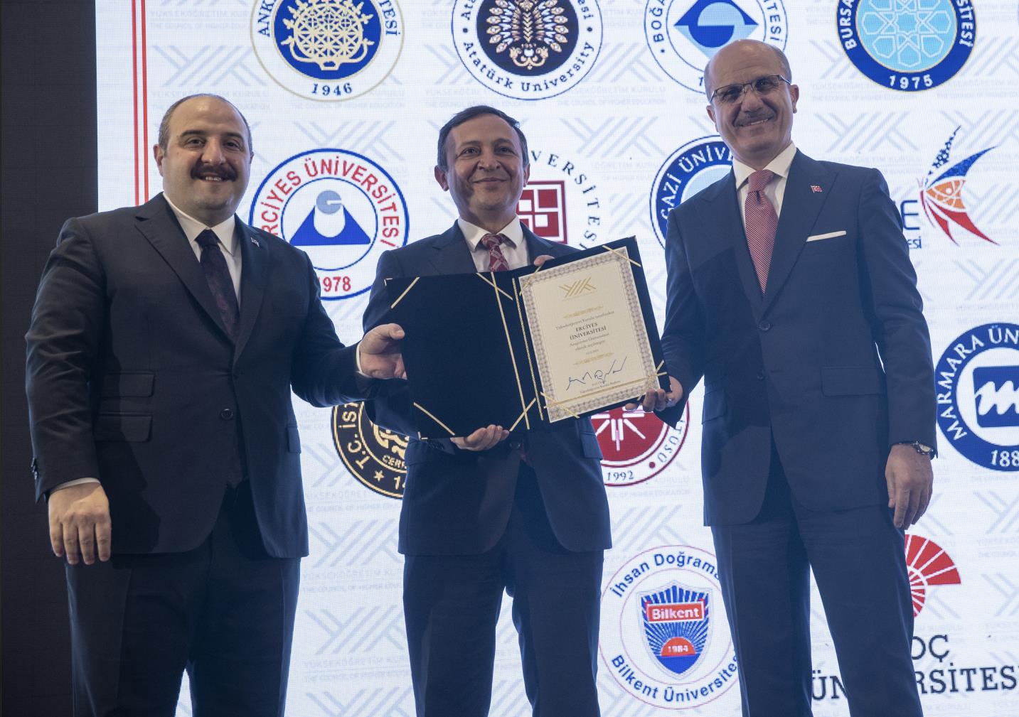 Sanayi ve Teknoloji Bakanı Mustafa Varank ile YÖK Başkanı Prof. Dr. Erol Özvar’ın Açılış konuşmalarıyla başlayan toplantıda Araştırma Üniversitelerinin İlanı ve Berat Takdimi yapıldı. Toplantıda ERÜ Rektör Prof. Dr. Mustafa Çalış Araştırma Üniversitesi Beratını Sanayi ve Teknoloji Bakanı Mustafa Varank ve YÖK Başkanı Prof. Dr. Erol Özvar’ dan aldı.