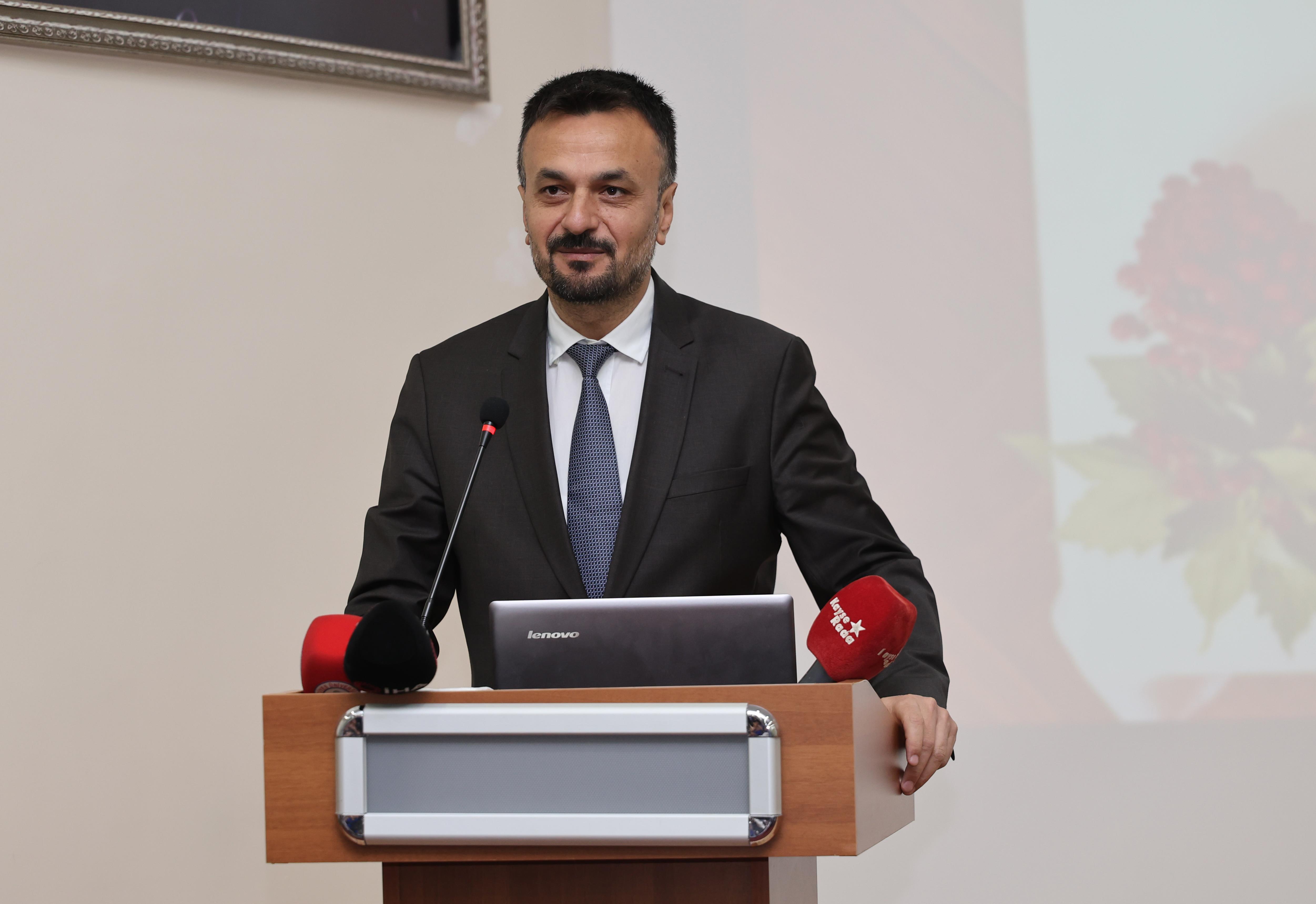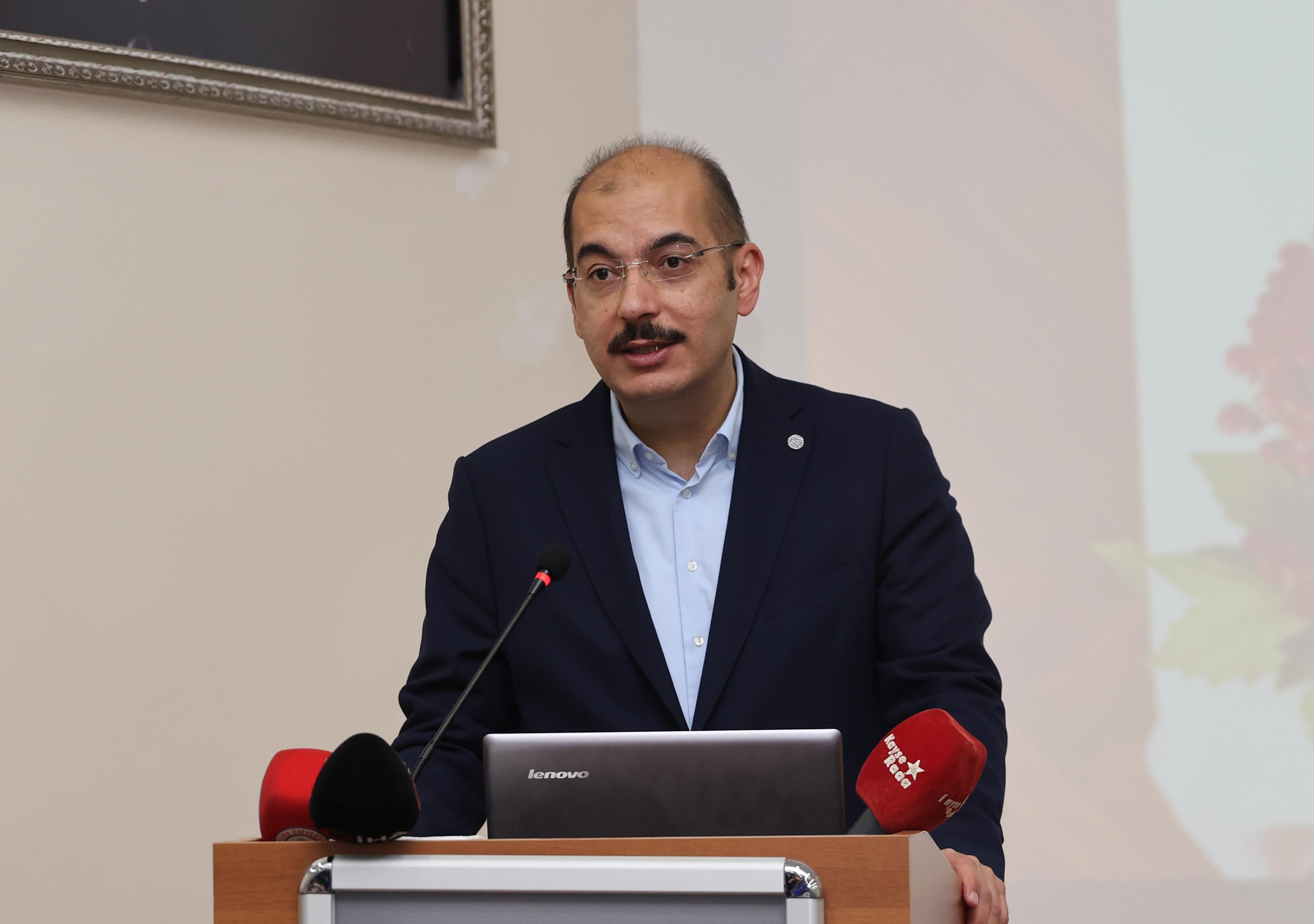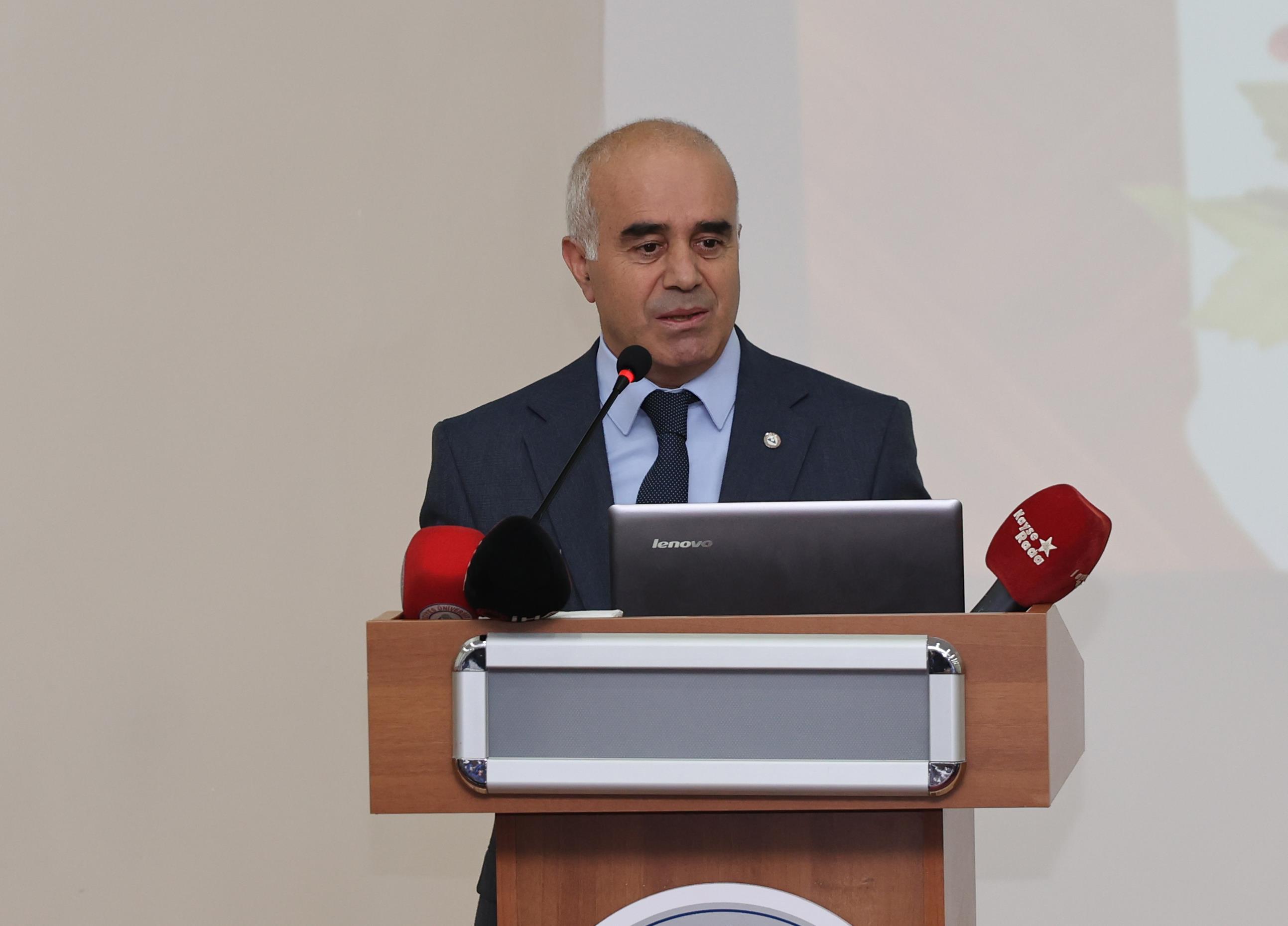 Kayseri Ticaret Odası Yönetim Kurulu Üyesi Latif Başkal konferansında Kayseri Pastırmasının Avrupa Birliği (AB) Coğrafi İşaret Tescil süreci hakkında bilgi verdi.
