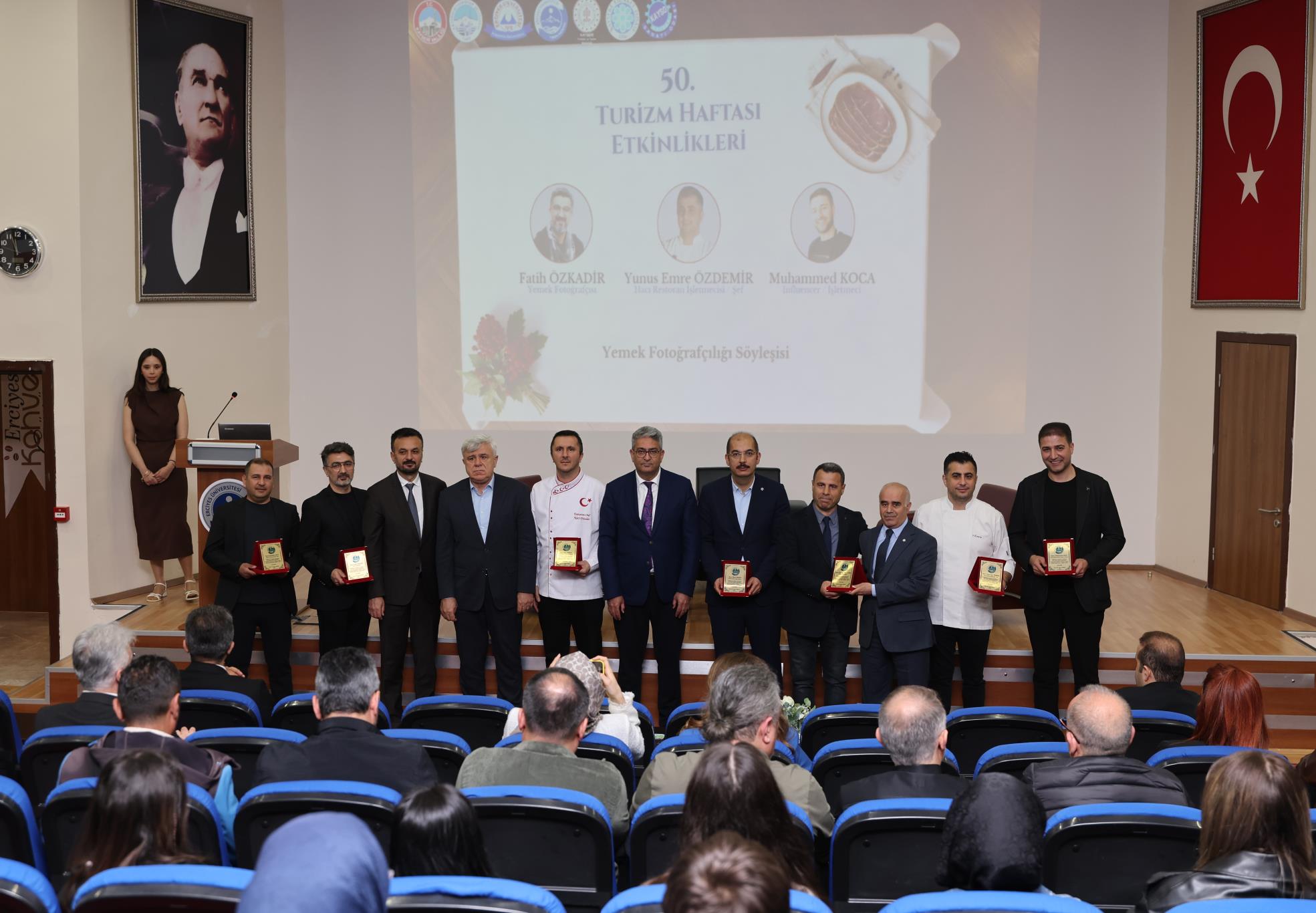 Turizm Fakültesi konferans Salonu’nda düzenlenen etkinliğe; ERÜ Rektör Yardımcımız Prof. Dr. Oktay Özkan, Kayseri Ticaret Odası Yönetim Kurulu Üyesi Latif Başkal, Kayseri Kent Konseyi Başkanı Serdar Altuntuğ, Turizm Fakültesi Dekanı Prof. Dr. Kenan Güllü, İl Kültür ve Turizm Müdürü Doç. Dr. Şükrü Dursun, Kayseri Ticaret İl Müdürü Gazi Dinçaslan, Kayseri Büyükşehir Belediyesi Kent Tarihi, Tanıtım ve Turizm Daire Başkanı Gürcan Senem, Genel Sekreter Yardımcımız Prof. Dr. Afşın Alper Cerit, Kayseri Otelciler Derneği Başkanı Murat Erdal, KAYTİD Başkanı Serdar Sarıçam ile akademisyenler ve öğrenciler katıldı.