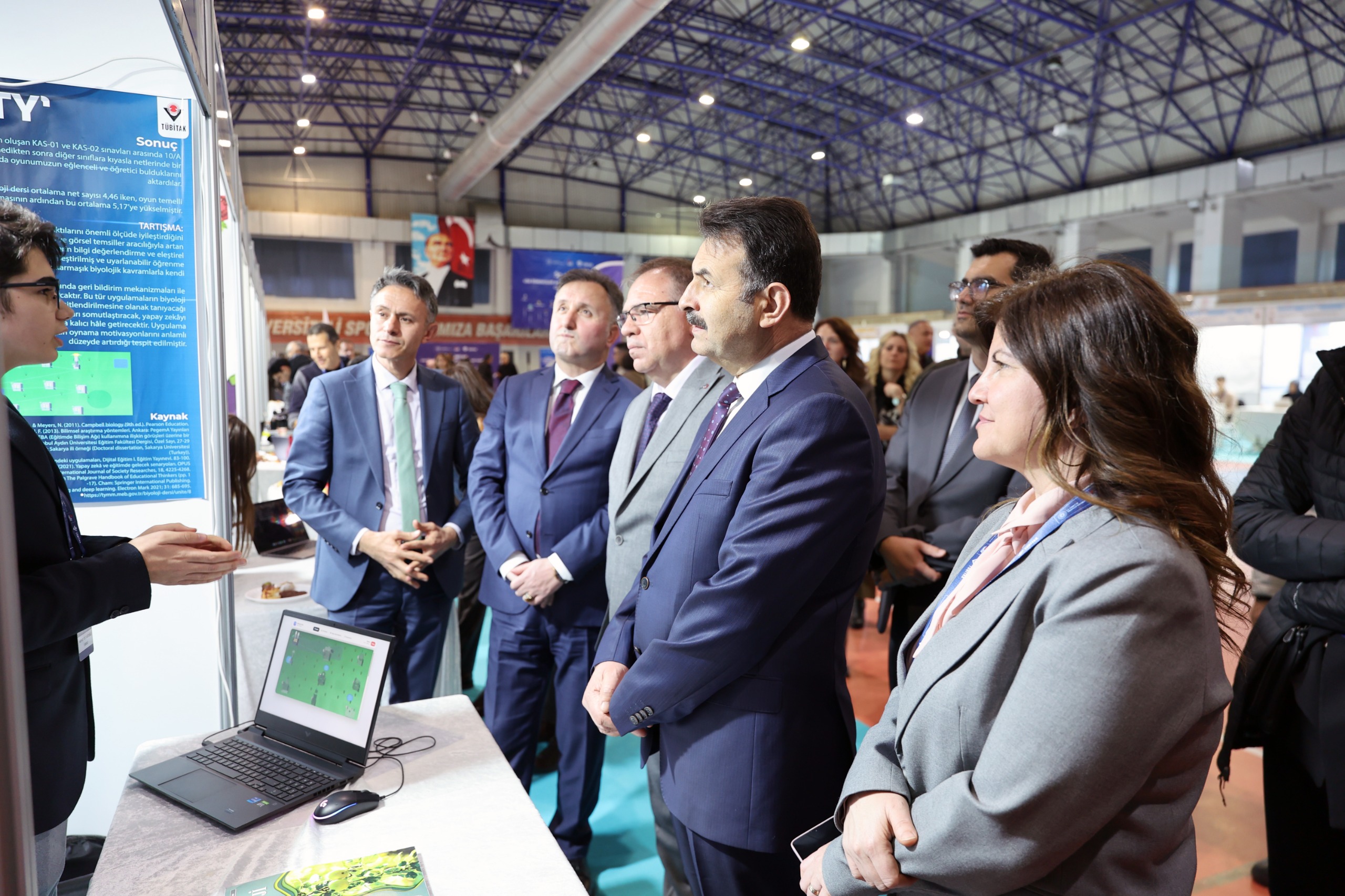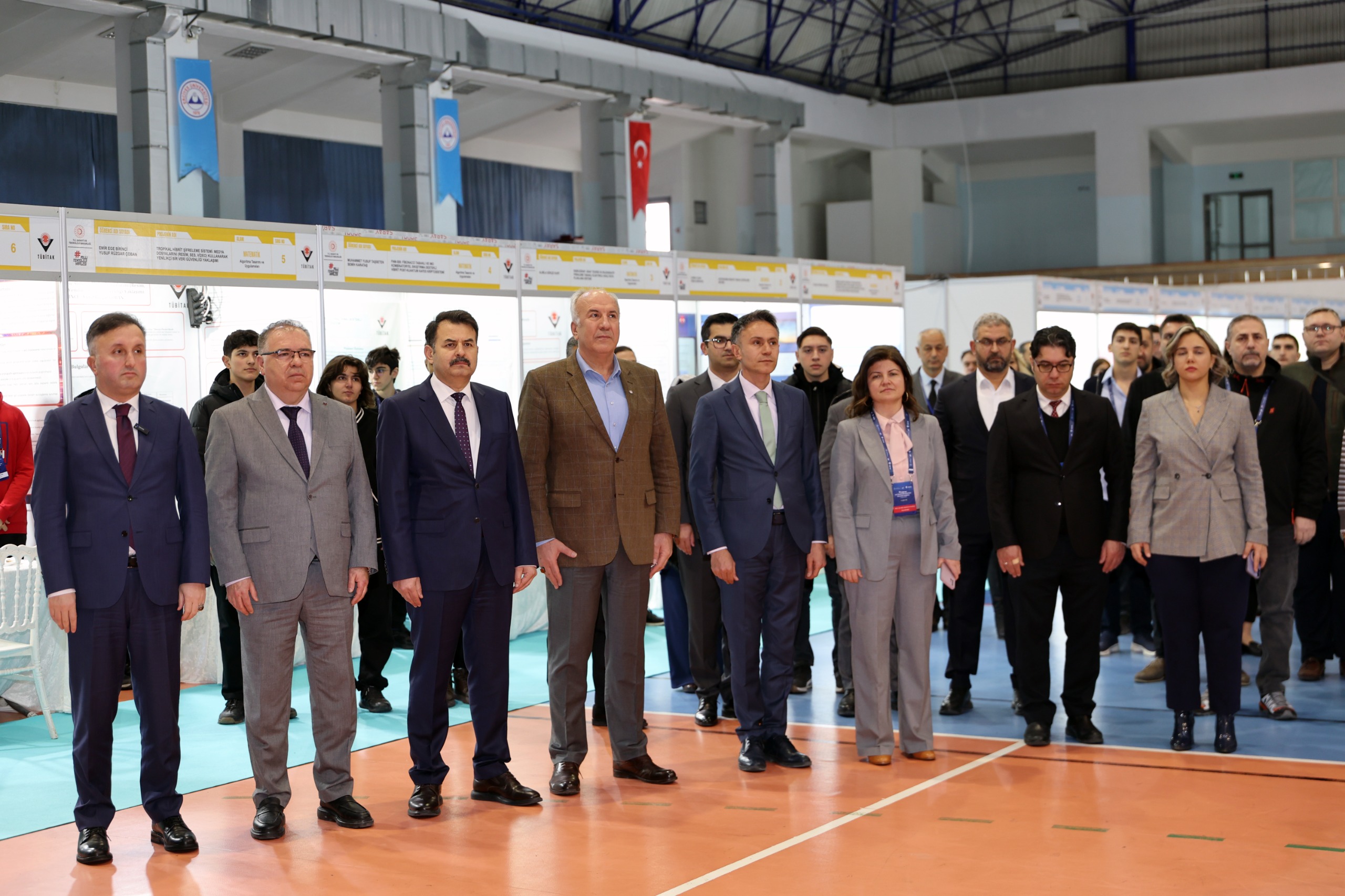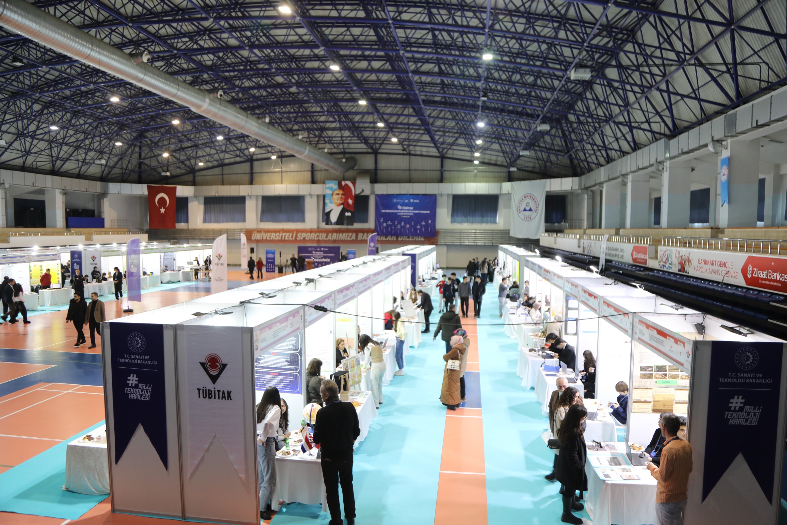 Prof. Dr. Ahmet Bilge Spor Salonu’nda gerçekleştirilen sergi açılış törenine; Kayseri Vali Yardımcısı Mehmet Türköz, Rektör Vekilimiz Prof. Dr. Cevdet Kırpık, İl Milli Eğitim Müdürü Coşkun Esen, TÜBİTAK Kayseri Bölge Koordinatörü Prof. Dr. Emel Kızılkaya Aydoğan, fakülte dekanları, enstitü müdürleri ile çok sayıda akademisyen, öğretmen ve öğrenci katıldı.