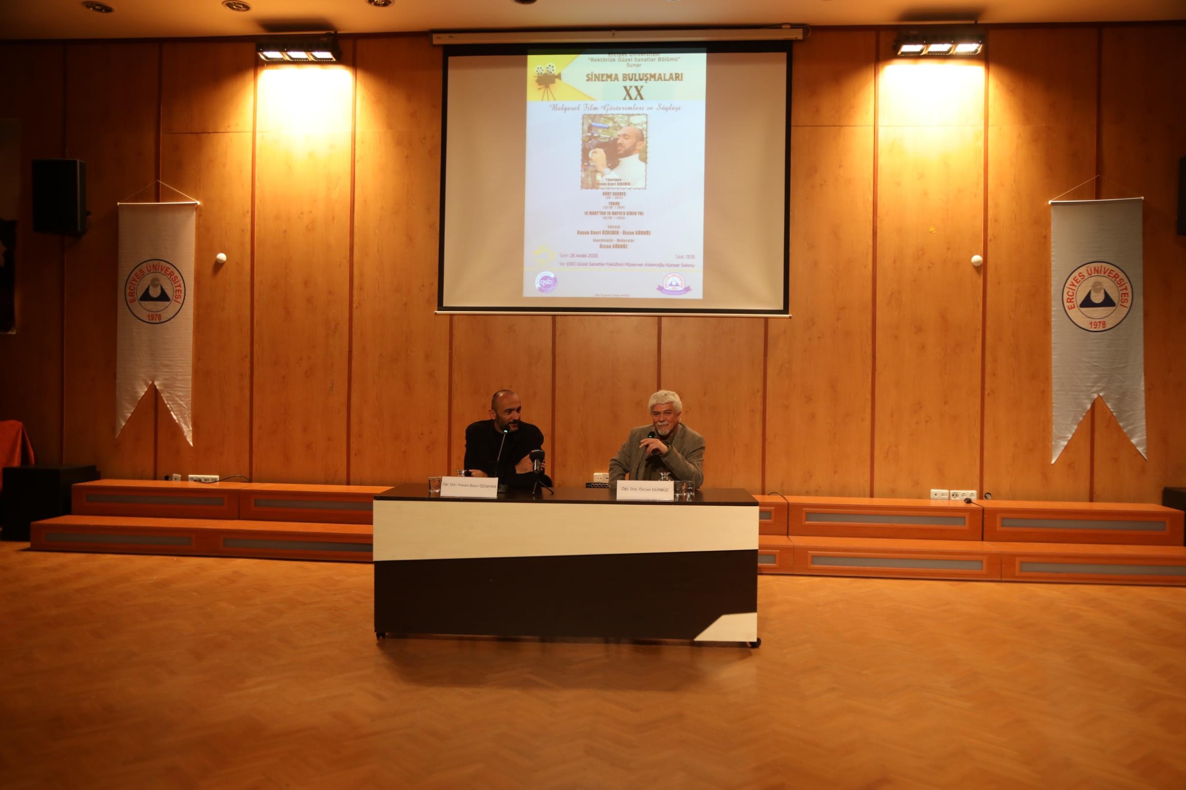 Söyleşinin moderatörlüğünü yapan Öğr. Gör. Özcan Gürbüz, söyleşide belgesel yapım süreçlerini anlattı.