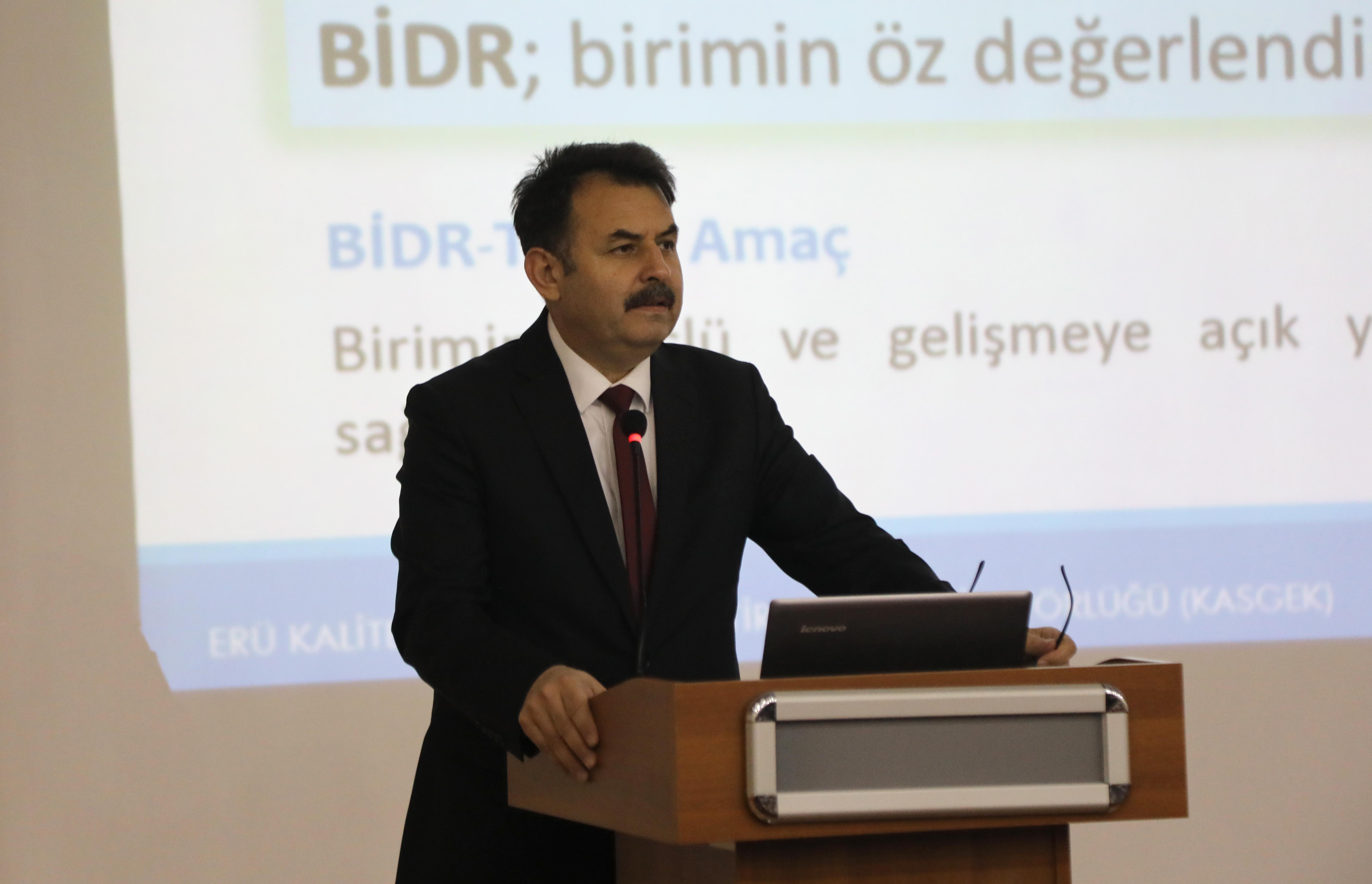 Rektör Yardımcımız Prof. Dr. Cevdet Kırpık’ın açılış konuşmasının ardından Üniversitemiz Kalite ve Strateji Geliştirme Koordinatörü Doç. Dr. Hayriye Hale Kozlu tarafından katılımcılara Birim İç Değerlendirme Raporları Hazırlanması Eğitimi verildi.