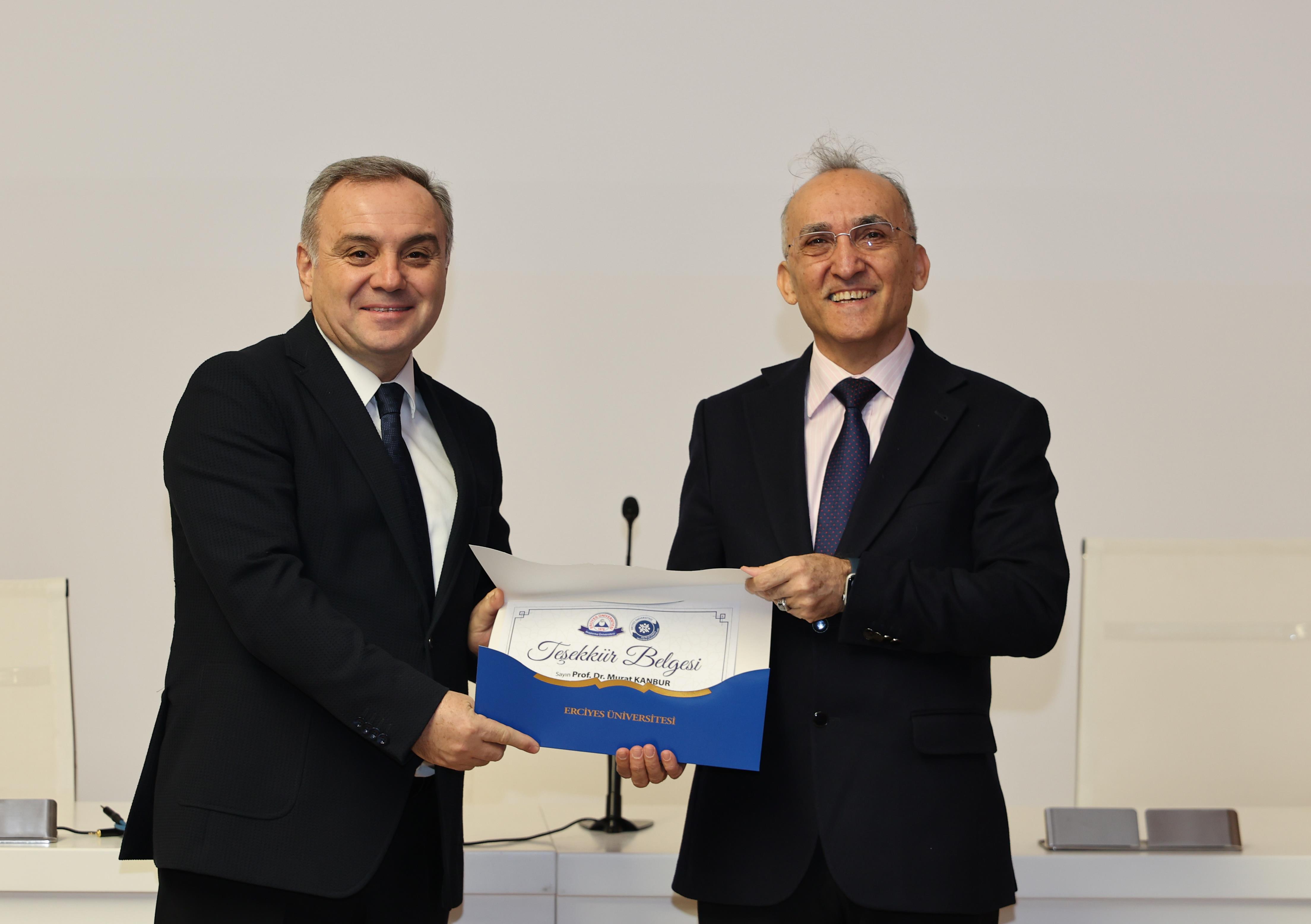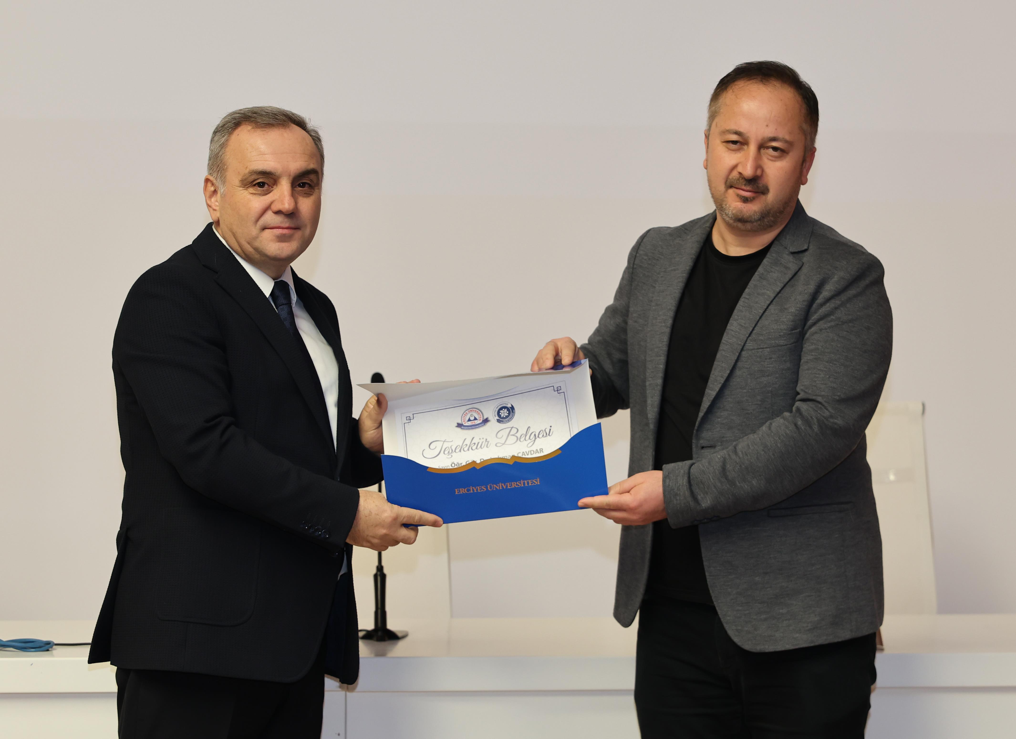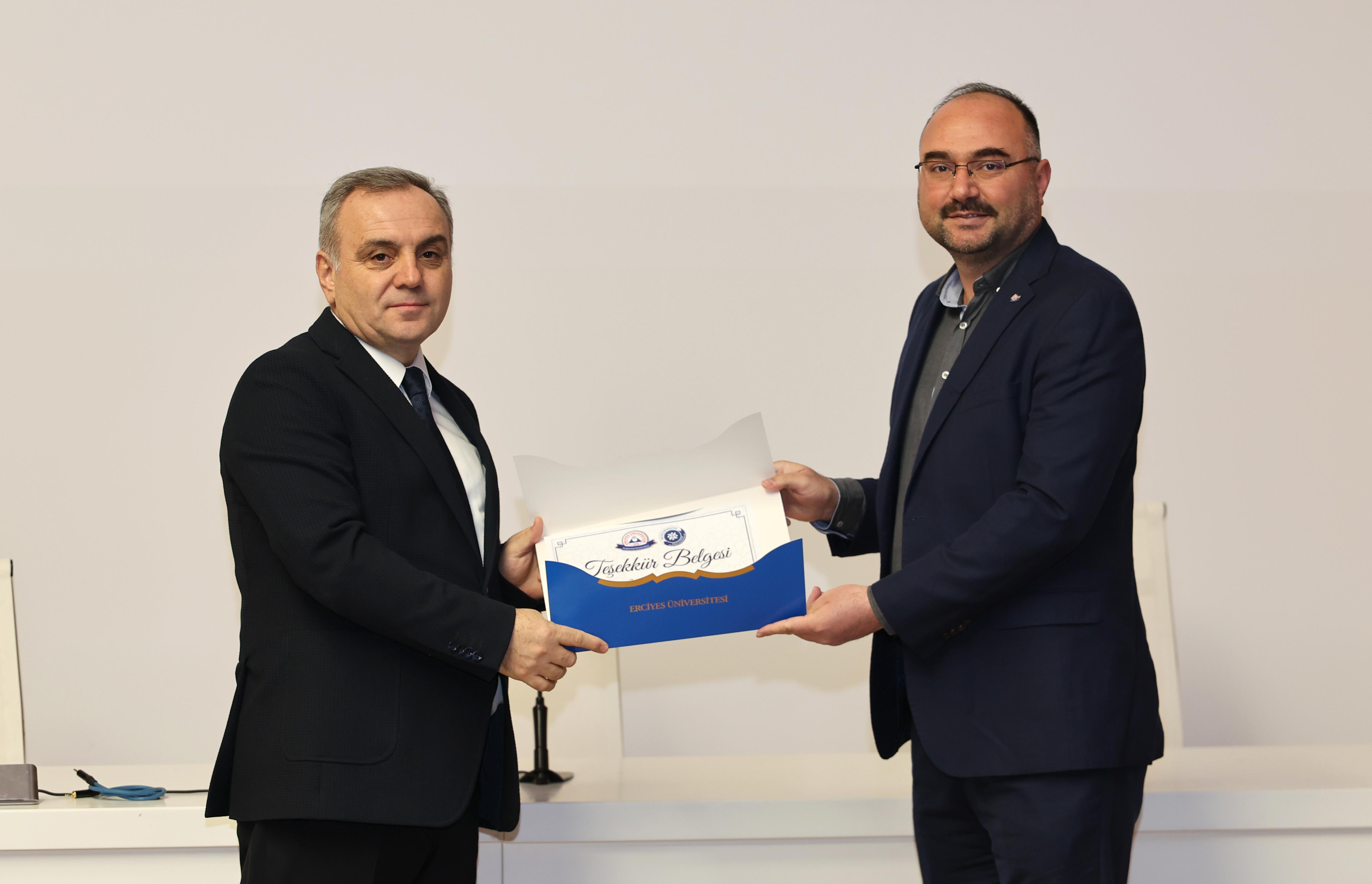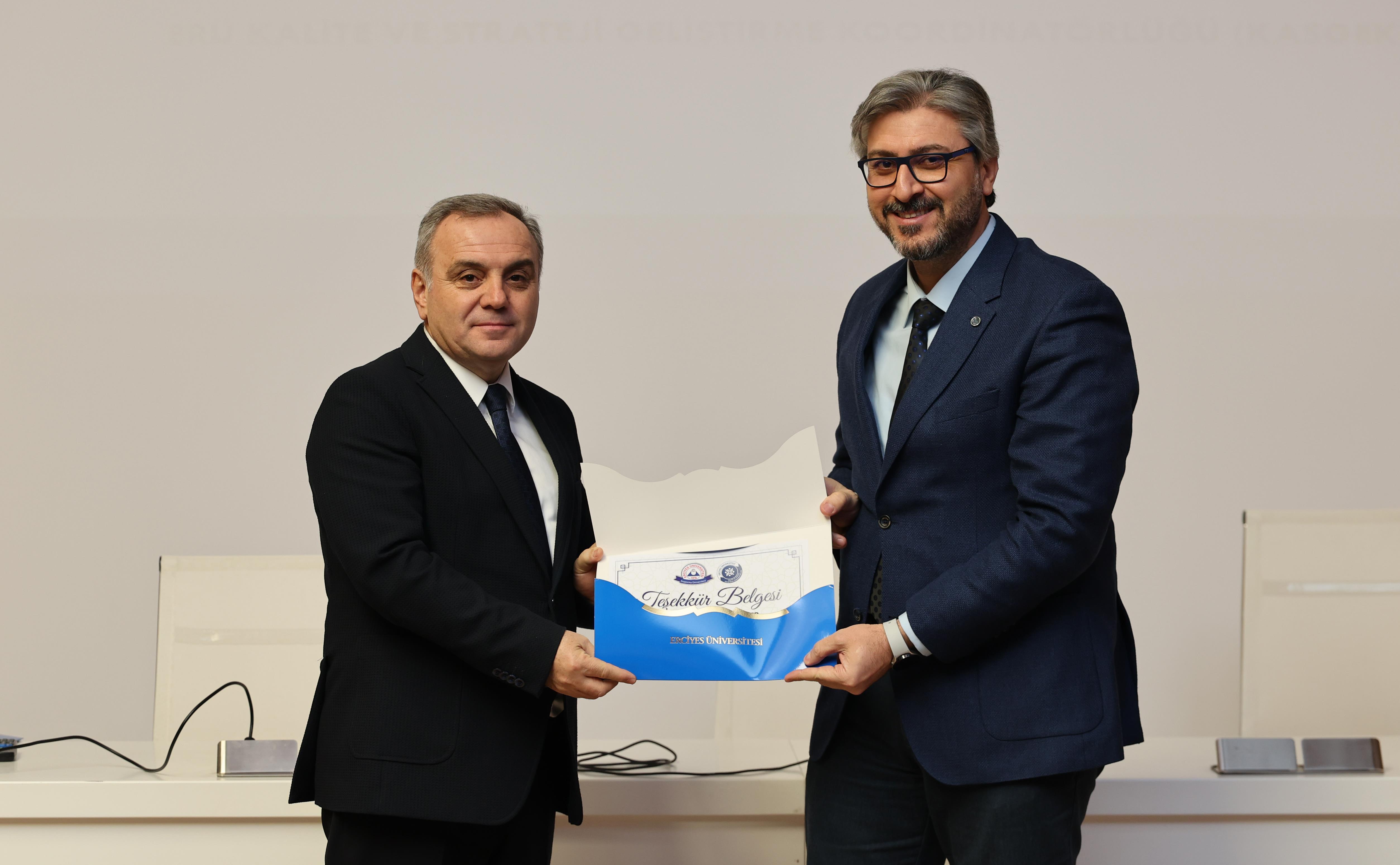 Rektörümüz Prof. Dr. Fatih Altun, konuşmasının ardından ise Kalite ve Strateji Geliştirme Koordinatörlüğü tarafından 29-30 Aralık 2025 tarihlerinde online olarak düzenlenen “Eğiticilerin Eğitimi 2025” programında eğitim veren eğitmenlere teşekkür belgesi takdim etti