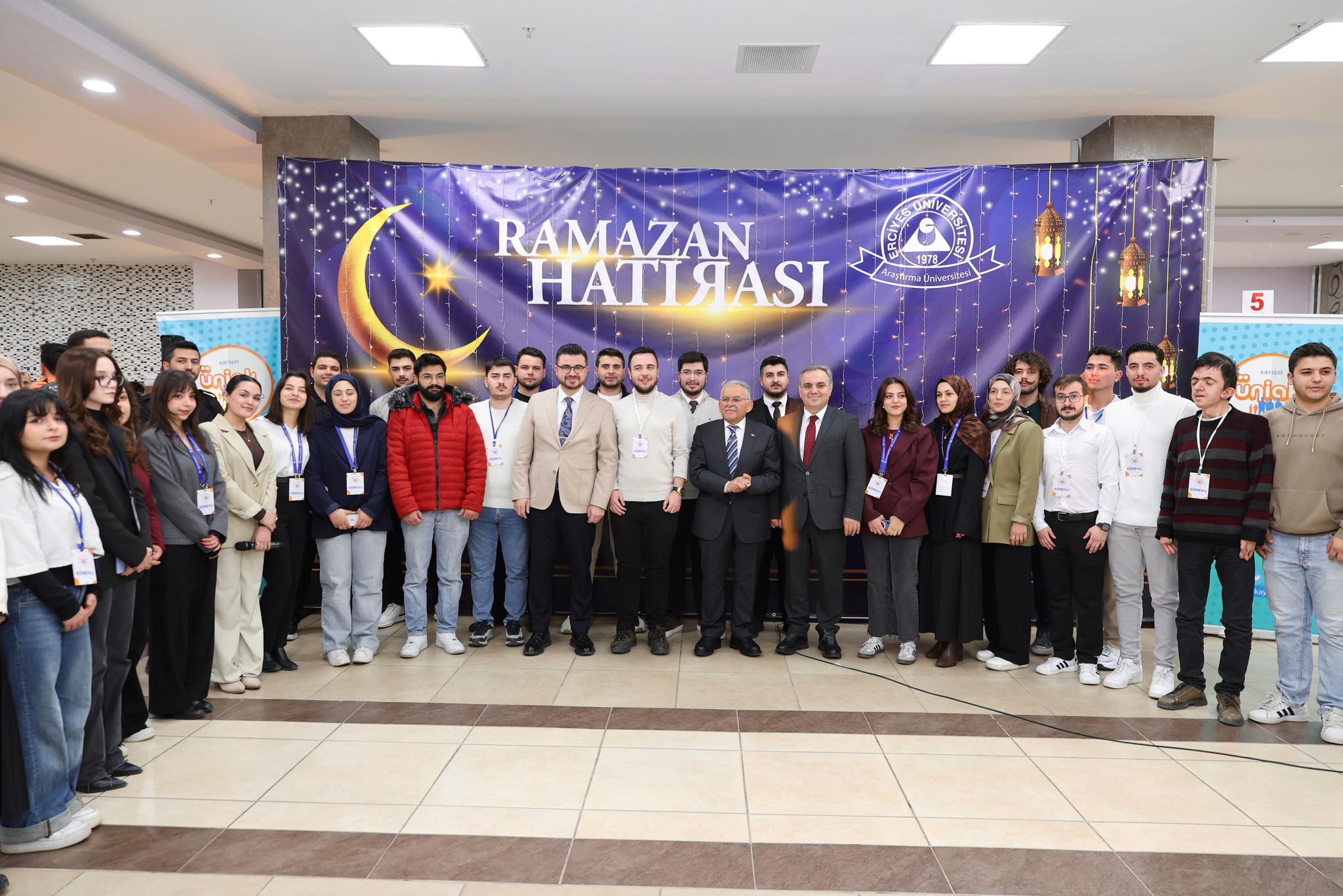 İftar öncesi Kayseri Büyükşehir Belediye Başkanı Dr. Memduh Büyükkılıç, Rektörümüz Prof. Dr. Fatih Altun ve beraberindekiler tek tek masaları dolaşarak öğrenciler ile sohbet etti.
