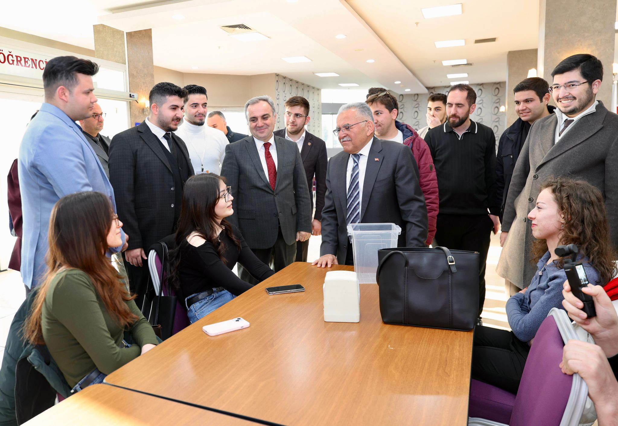 Üniversitemiz Öğrenci Yemekhanesinde düzenlenen programa; Kayseri Büyükşehir Belediye Başkanı Dr. Memduh Büyükkılıç, Rektörümüz Prof. Dr. Fatih Altun, AK Parti Merkez Karar ve Yönetim Kurulu Üyesi Abdurrahman Akyüz, AK Parti Kayseri İl Başkanı Hüseyin Okandan ile öğrenciler katıldı.