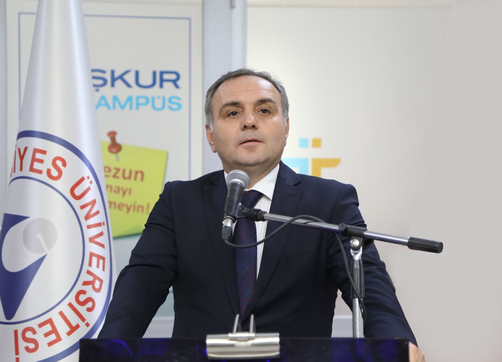 Saygı duruşu ve İstiklal Marşı ile başlayan etkinlikte, Rektörümüz Prof. Dr. Altun ve davetliler tarafından İŞKUR İş Kulübü Salonu’nun açılış kurdelesi kesildi.