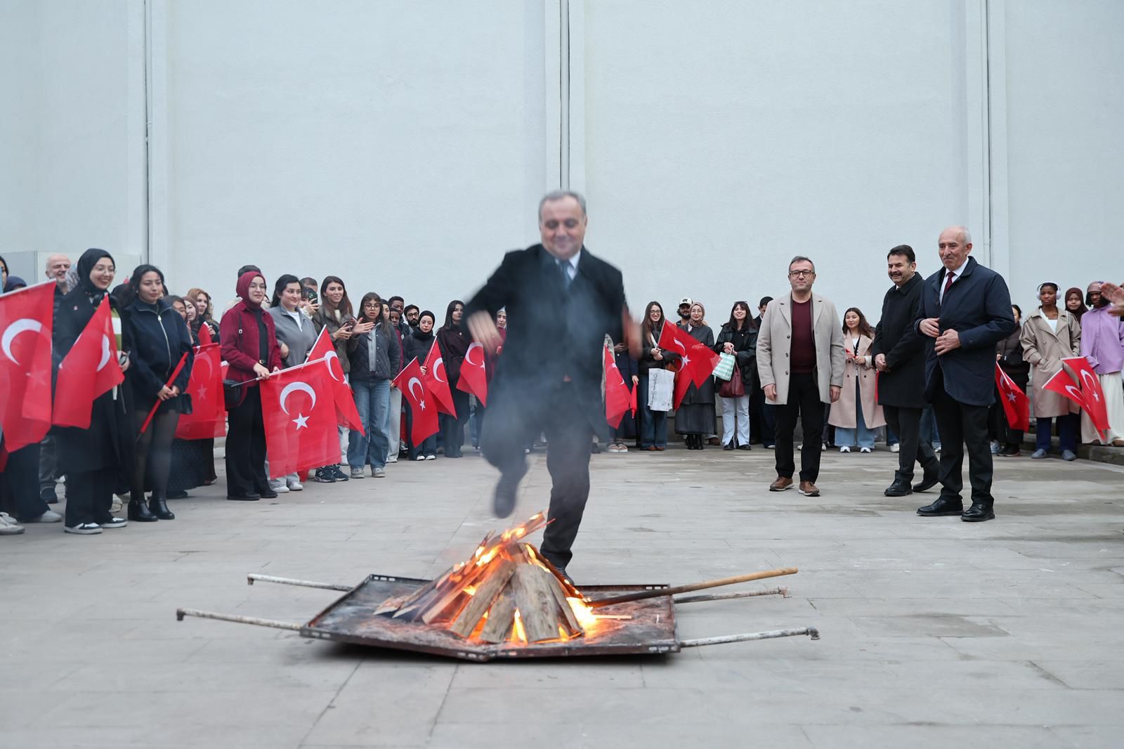Nevruz Ateşi’nin yakıldığı etkinlikte, örs üzerinde demir dövüldü ve öğrenciler tarafından bayrak gösterisi gerçekleştirildi.