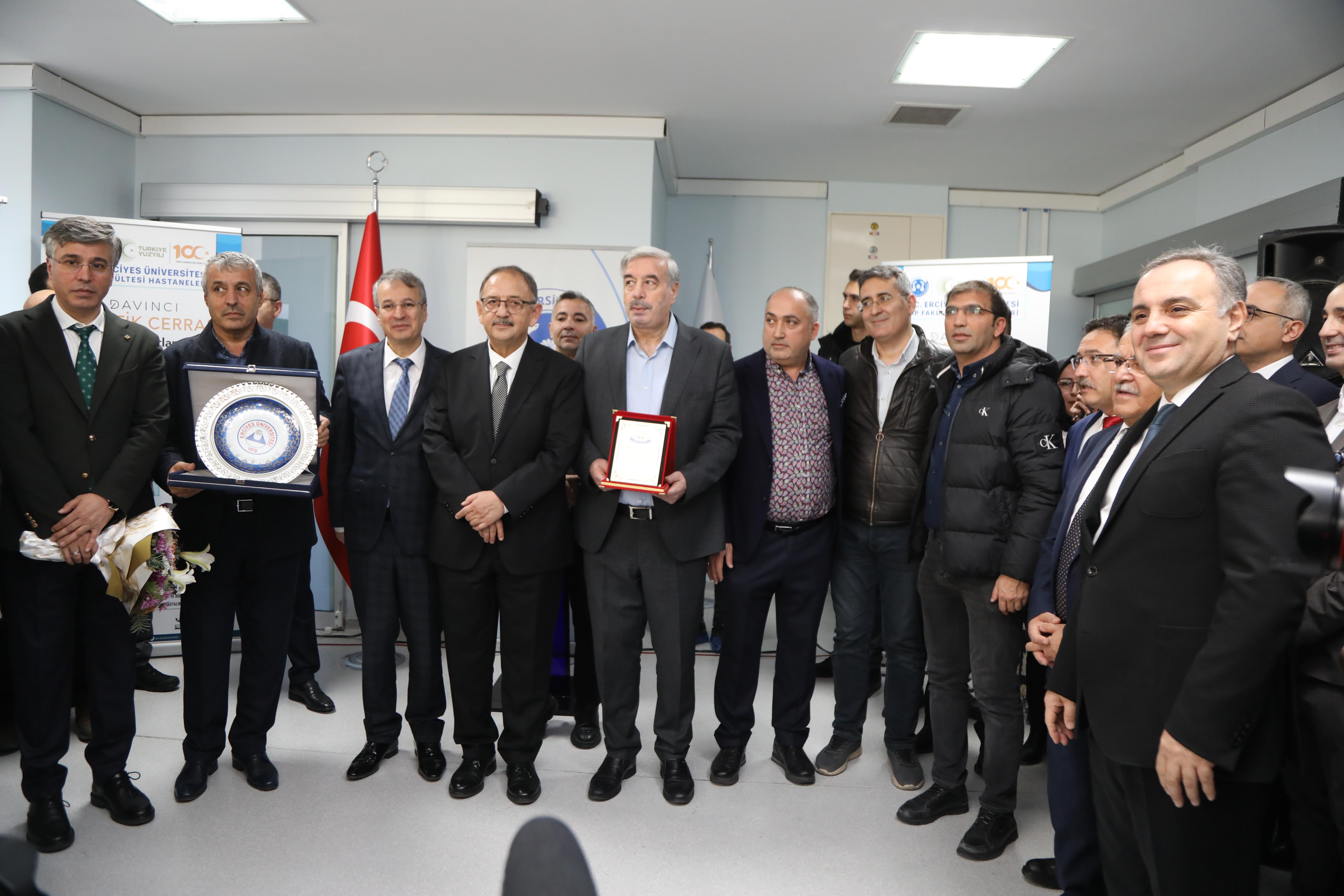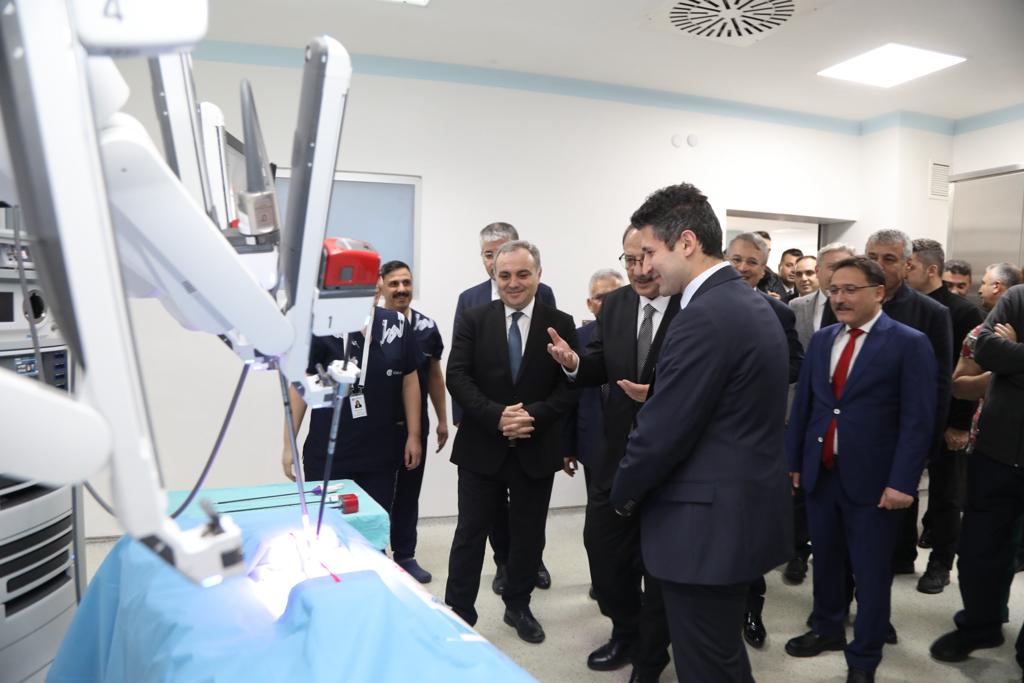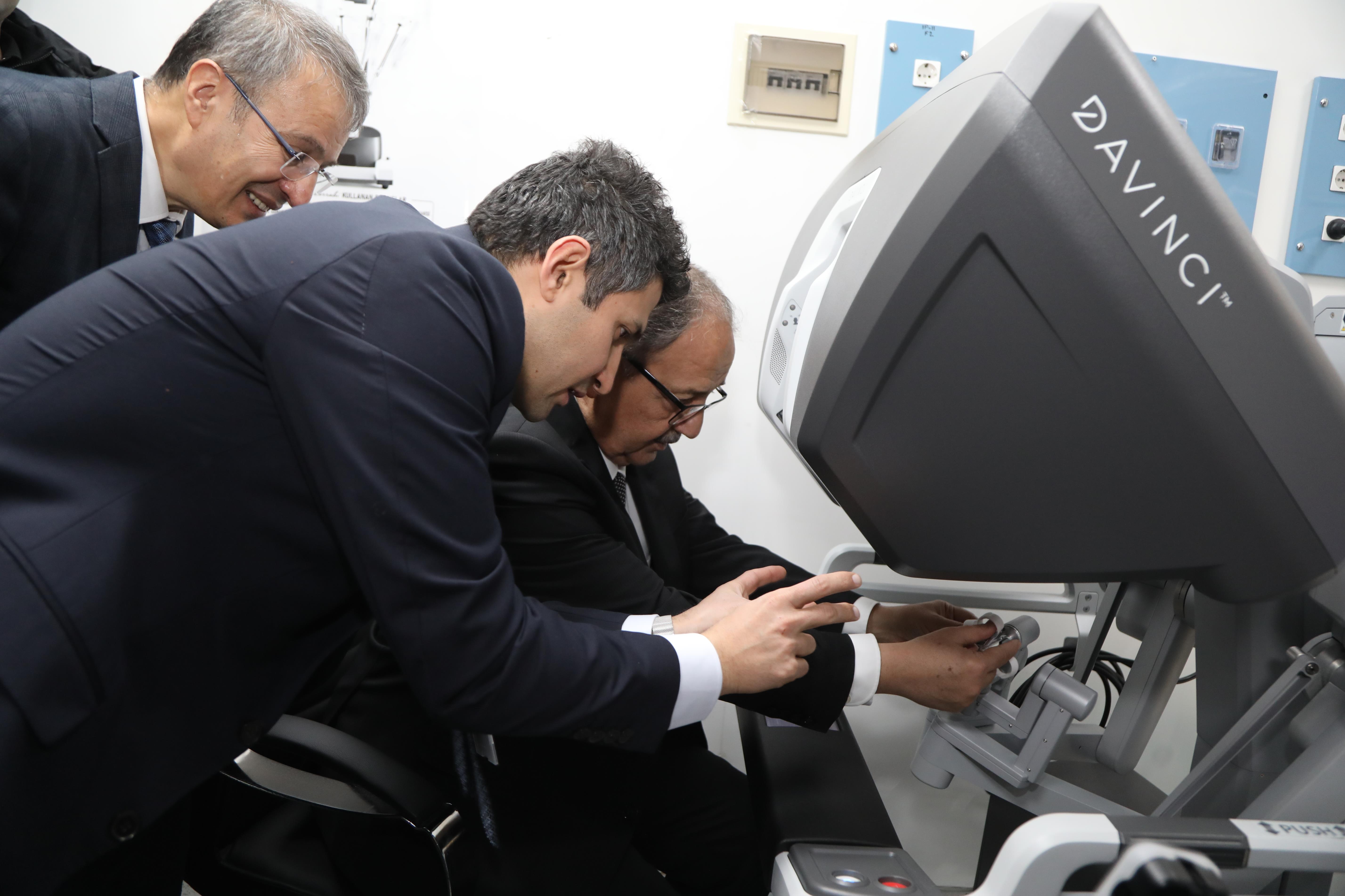 Konuşmalarından ardından Çevre, Şehircilik ve İklim Değişikliği Bakanı Mehmet Özhaseki ve davetliler tarafından robotik cerrahi sistemi Da Vinci cihazının açılış kurdelesi kesilerek, cihaz hakkında akademisyenlerden bilgi alındı.