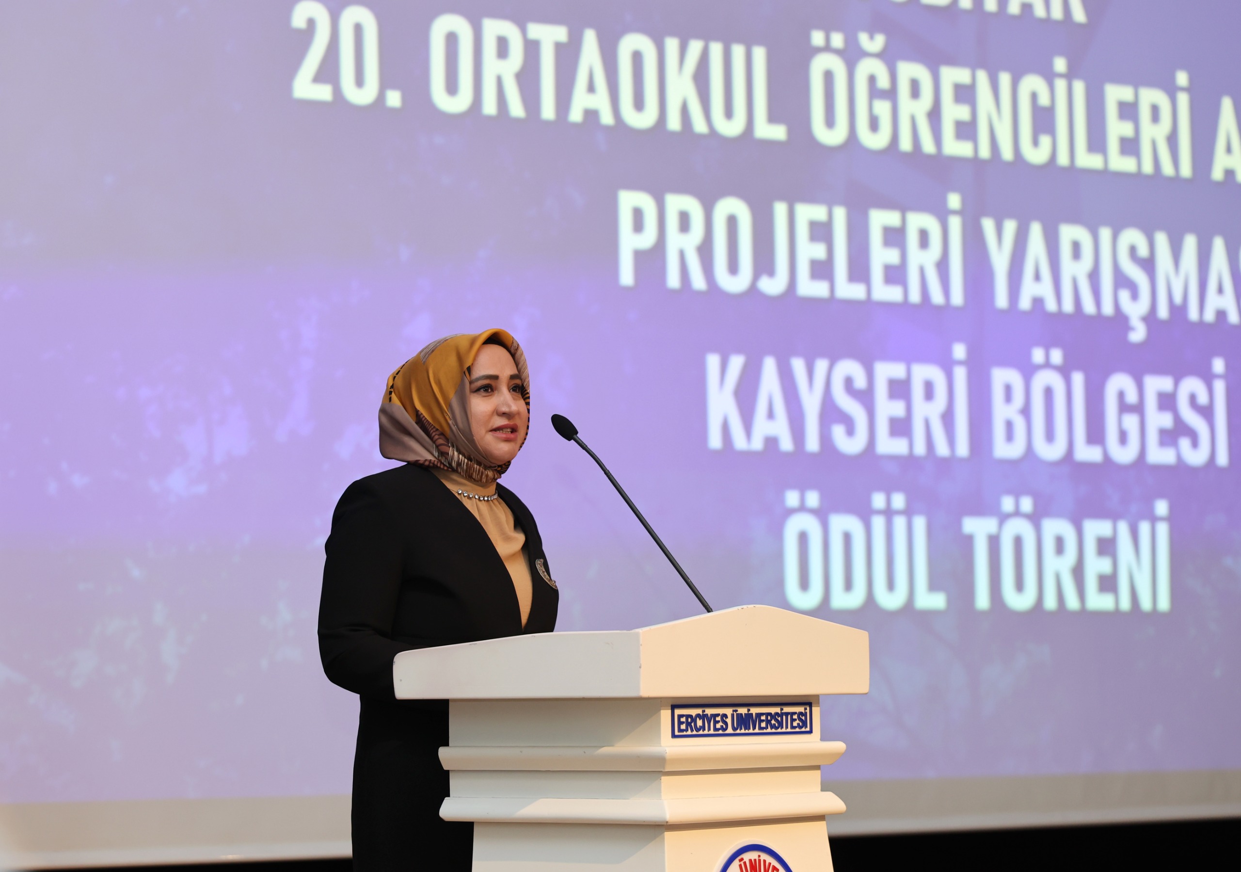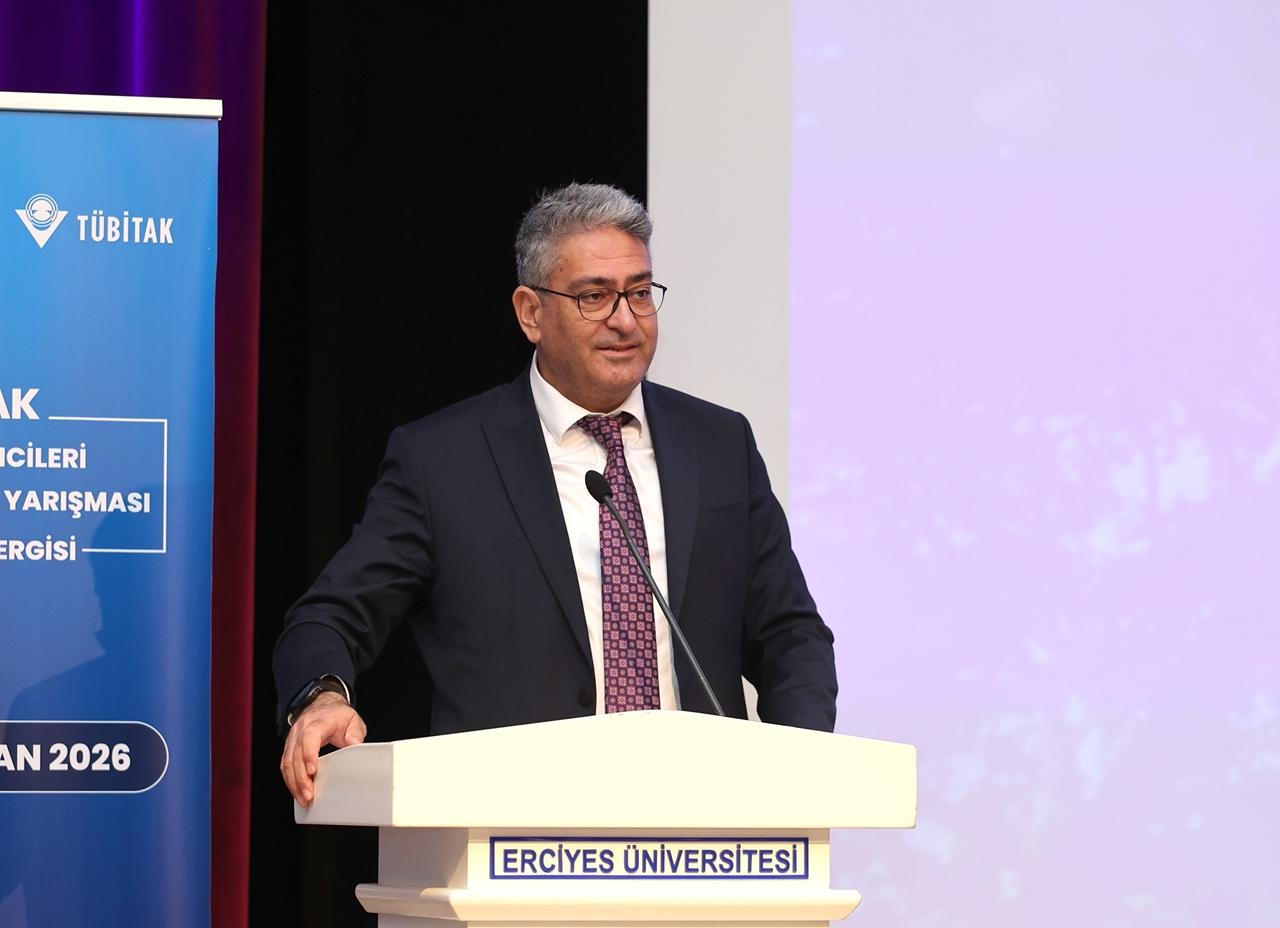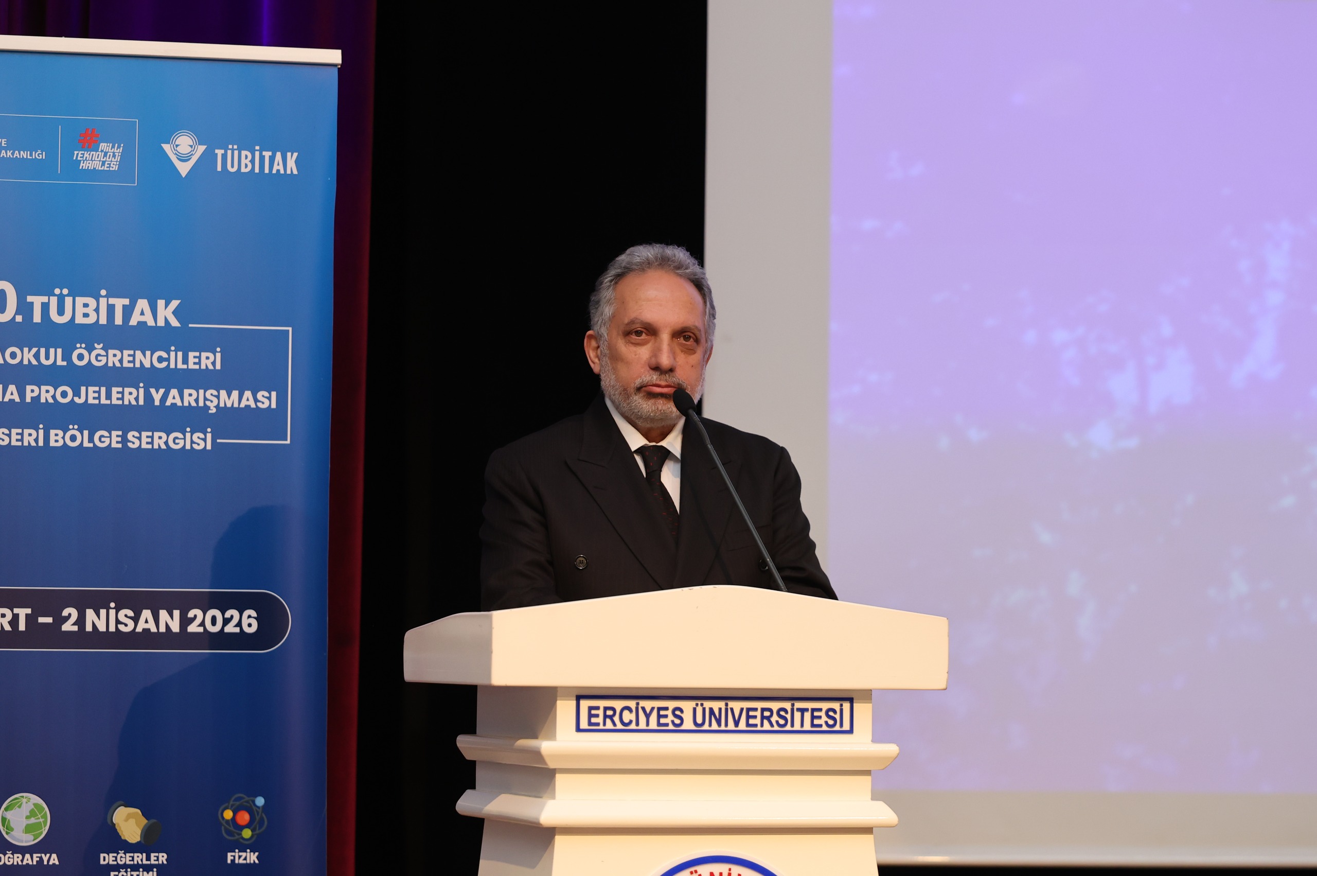 Kayseri Bölge Koordinatörü Prof. Dr. Emel Kızılkaya Aydoğan ise konuşmasında yarışmaya desteklerinden dolayı Üniversitemiz yönetimine teşekkür ederek, “Bir projeye emek vermek, bir fikri sonuna kadar taşımak, vazgeçmemek, işte bunlar hayatın en büyük kazanımlarıdır. Çünkü bilim sadece alkış alanların değil, denemeye devam edenlerin yoludur. Belki bu salonda oturan bir öğrenci yarın dünyada bir ilke imza atacak. Belki biriniz insanlığın en büyük sorunlarından birine çözüm bulacaksınız. Belki de en önemlisi biriniz başka bir çocuğun ‘Ben de yapabilirim’ demesine vesile olacaksınız” şeklinde konuştu.