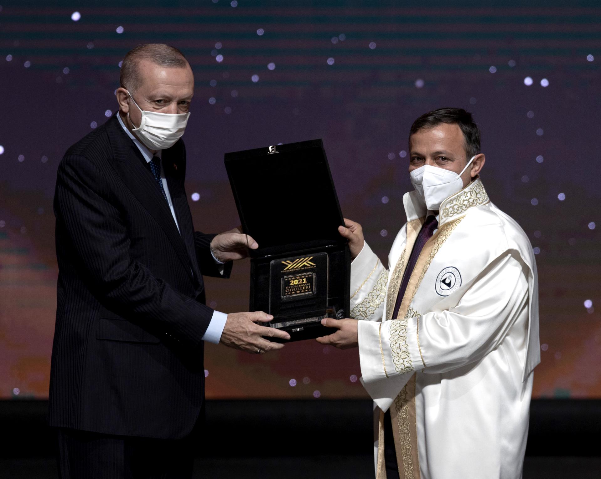 Ödül, Rektörümüz Prof. Dr. Mustafa Çalış’a Cumhurbaşkanı Recep Tayyip Erdoğan tarafından tevdi edildi.