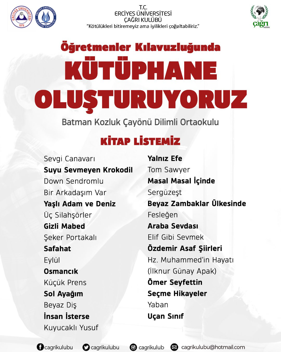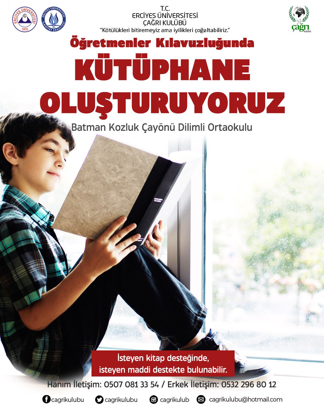 ERÜ İlahiyat Fakültesi tarafından Batman Kozluk Çayönü Dilimli Ortaokulu için Kitap Kampanyası düzenlenmektedir.