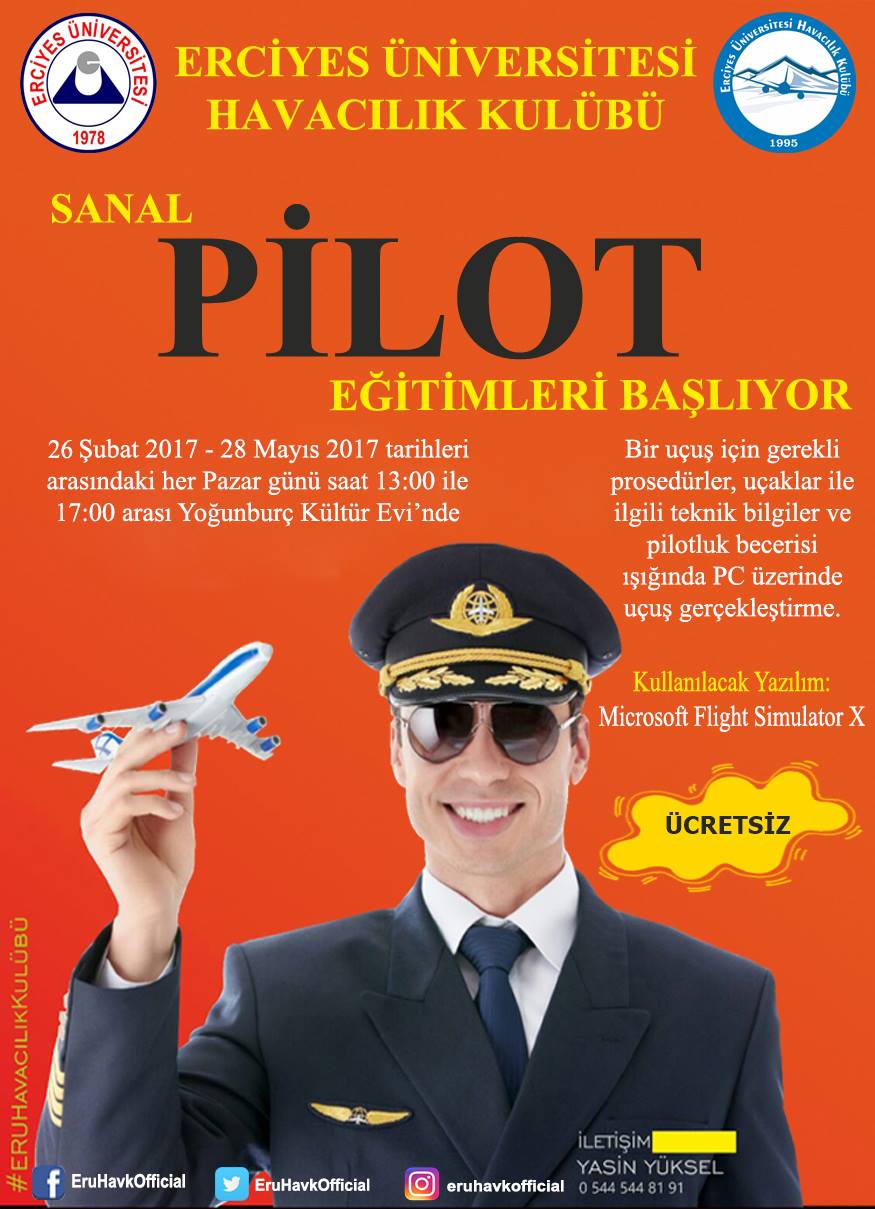 Üniversitemiz Havacılık Kulübü tarafından düzenlenen Sanal Pilot Eğitimleri 26 Şubat -28 Mayıs 2017 tarihleri arasında her Pazar günü saat 13.00 ile 17.00 arası Yoğunburç Kültür Evinde ücretsiz olarak verilecektir.