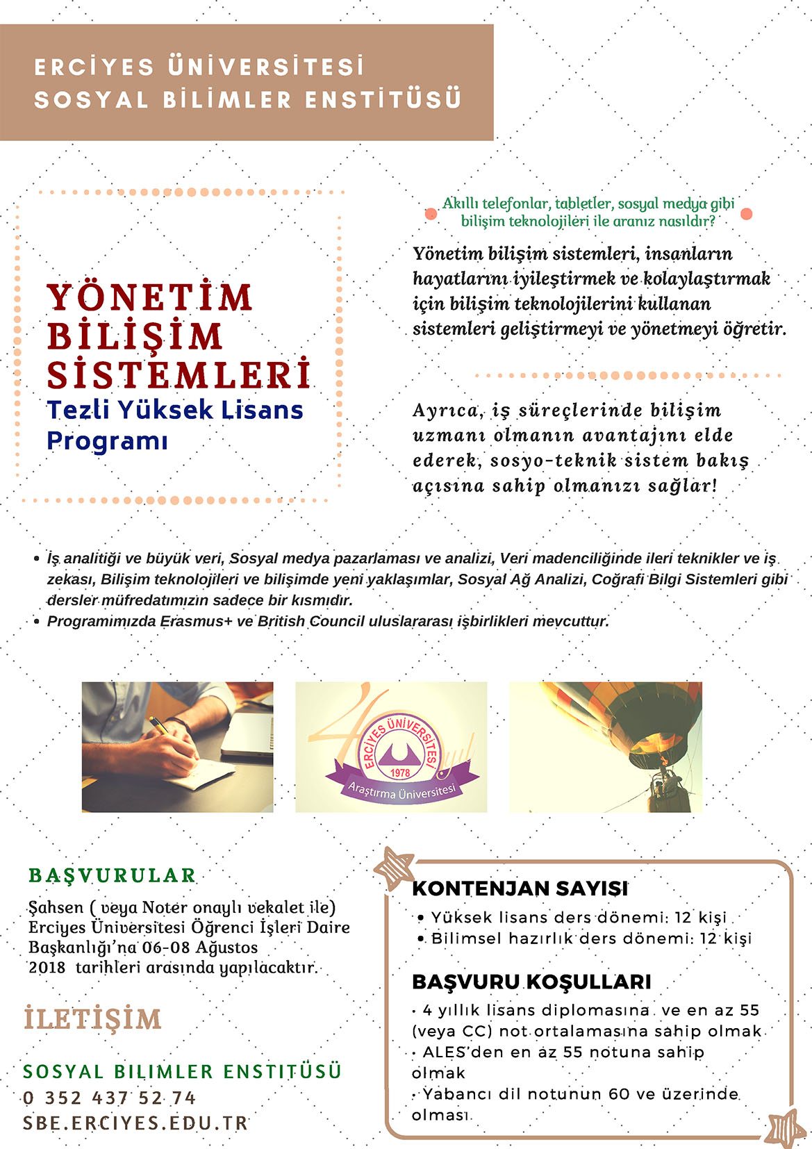 Sosyal Bilimler Enstitüsü Yönetim Bilişim Sistemleri Yüksek Lisans Programı Başvuruları Hakkında Duyuru