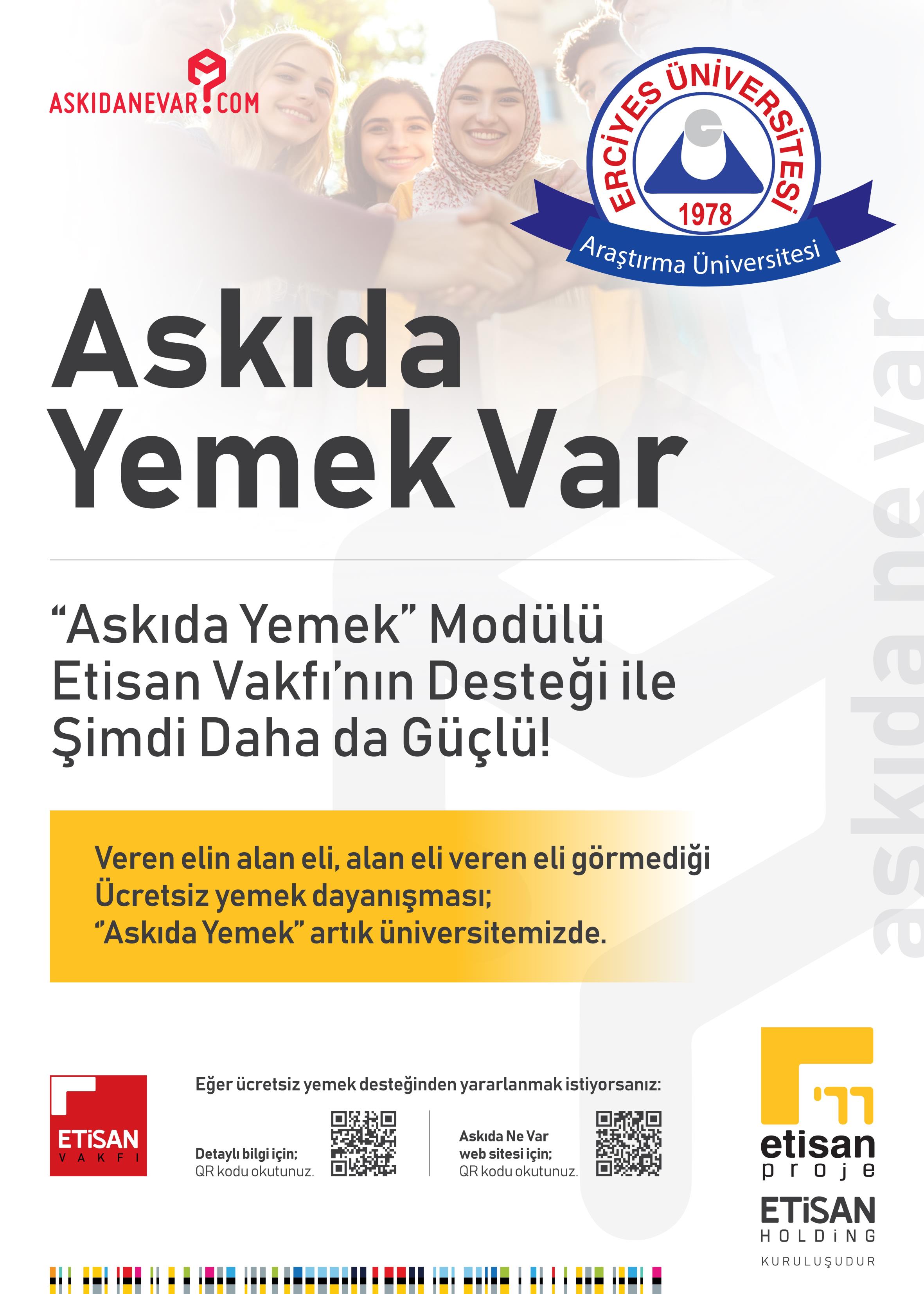 “ASKIDA YEMEK” modülü uygulamasından ücretsiz yemek desteğinden yararlanabilmeniz için QR Kodu okutarak “Askıda Ne Var” web sitesine girerek Askıda Yemek hizmetinden faydalanabilirsiniz.
