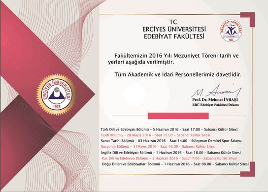 Edebiyat Fakültesi İngiliz Dili ve Edebiyatı Bölümü 2016 Yılı Mezuniyet Töreni