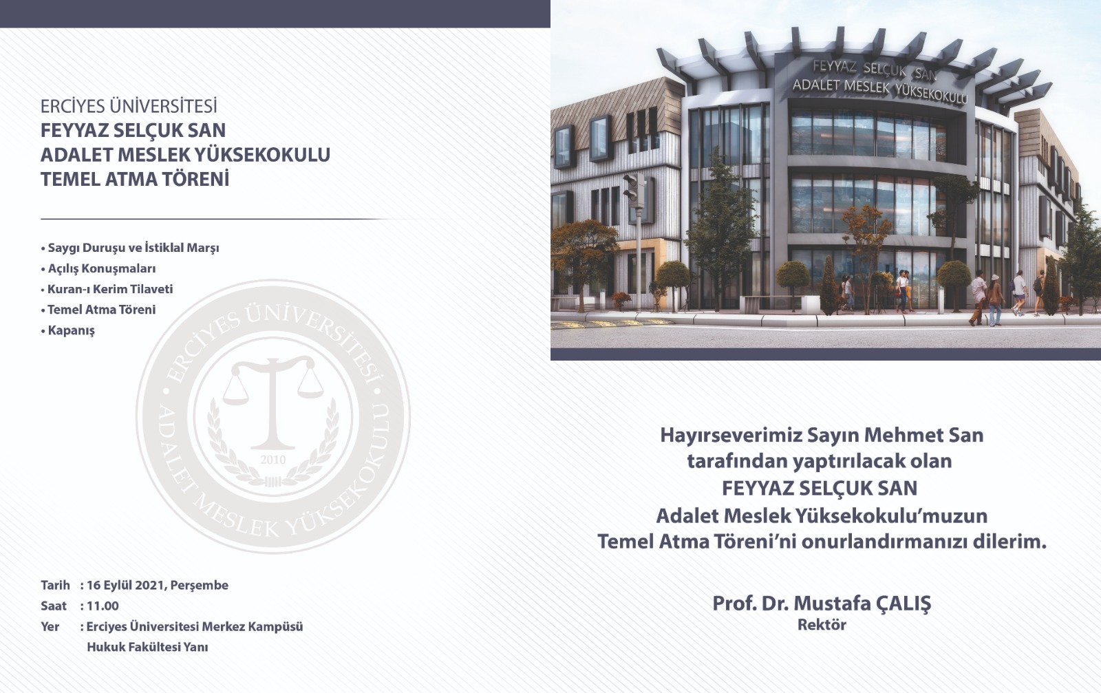 Feyyaz Selçuk San Adalet Meslek Yüksekokulu Temel Atma Töreni