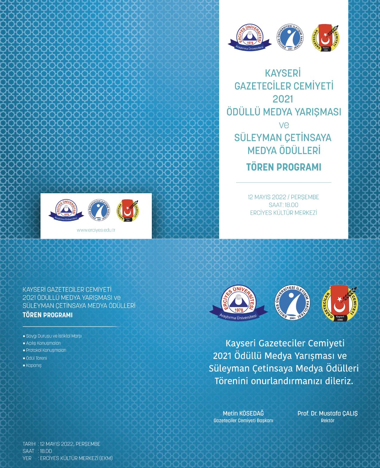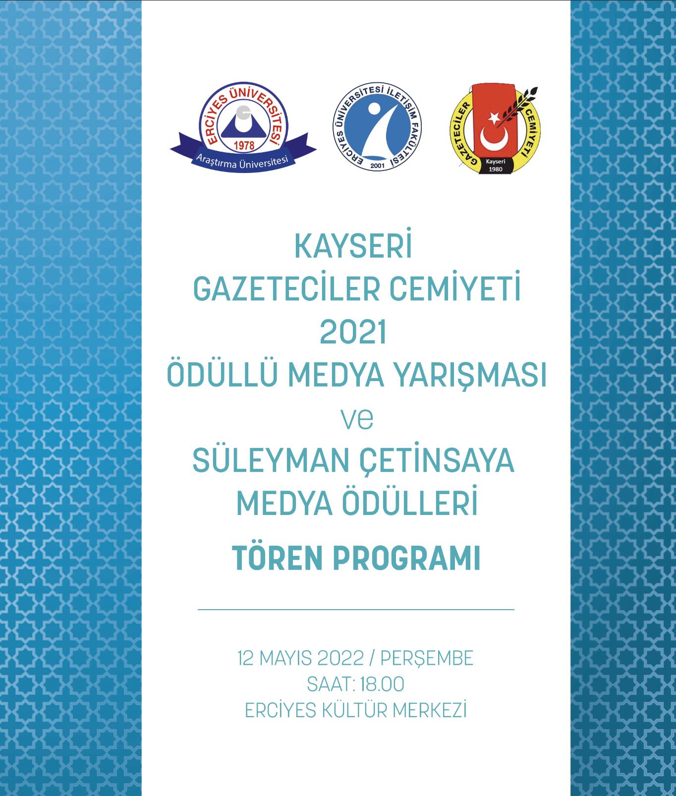 Kayseri Gazeteciler Cemiyeti 2021 Ödüllü Medya Yarışması ve Süleyman Çetinsaya Medya Ödülleri Töreni