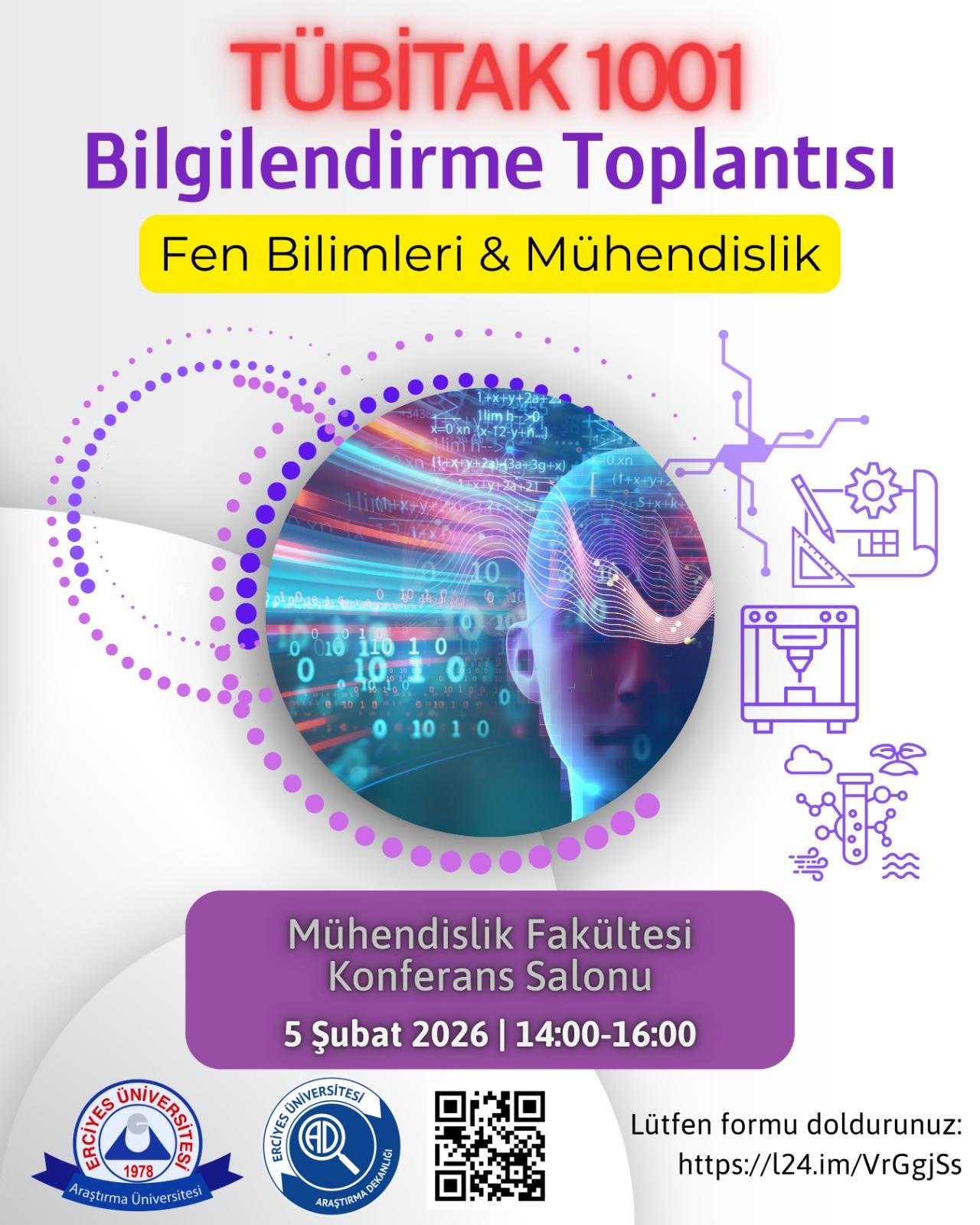 5 Şubat 2026 Perşembe günü 14.00-16.00 saatleri arasında, Mühendislik Fakültesi Konferans Salonunda Araştırma Dekanlığı Proje Destek Ofisi tarafından TÜBİTAK 1001 projelerine dair Fen Bilimleri & Mühendislik alanına yönelik bilgilendirme toplantısı gerçekleştirilecektir. Toplantıda program hakkında genel bilgilendirme, başvuruda dikkat edilmesi gerekenler ve ret gerekçeleri hakkında sunum gerçekleştirilecektir.