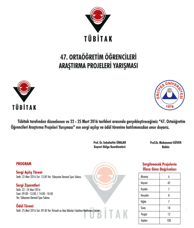 TÜBİTAK 47. Ortaöğretim Öğrencileri Araştırma Projeleri Yarışması
