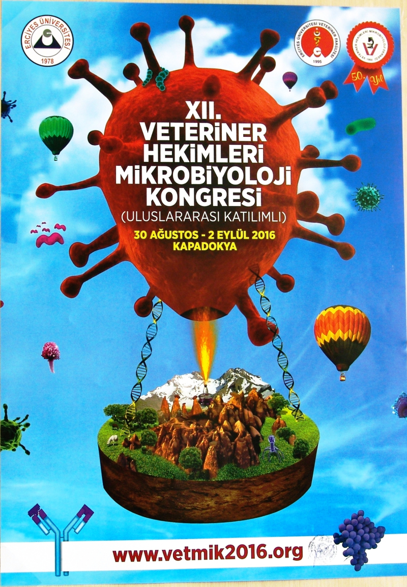 Erciyes Üniversitesi Veteriner Fakültesi, Mikrobiyoloji Anabilim Dalı ile Veteriner Hekimleri Mikrobiyoloji Derneği tarafından ortaklaşa düzenlenen XII.Veteriner Hekimleri Mikrobiyoloji Kongresi (Uluslararası katılımlı), 30 Ağustos-02 Eylül 2016 tarihlerinde Kapadokya-Nevşehir[TIRNAK]de düzenlenecektir.